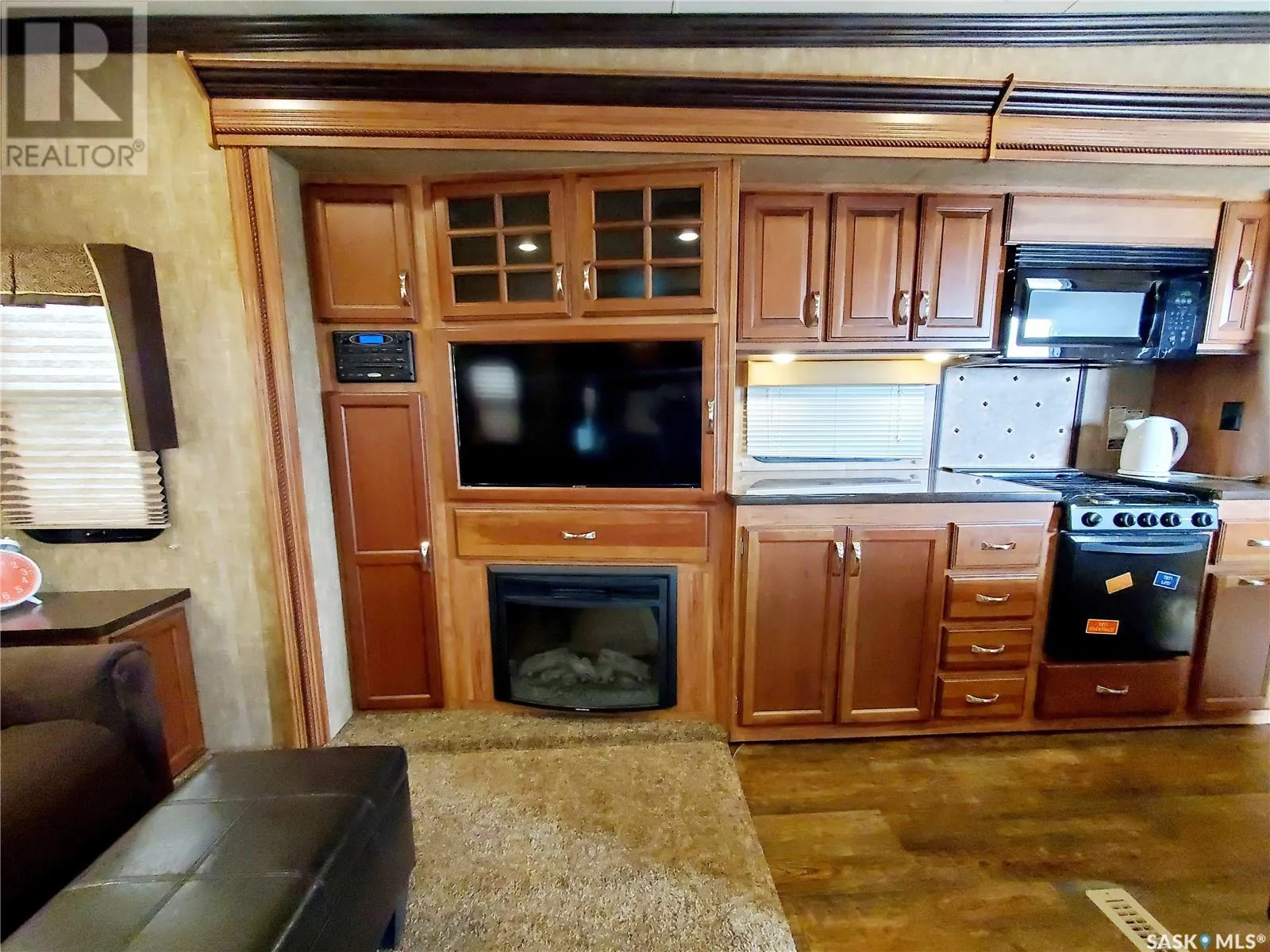Lakefront Luxury at Rock Ridge RV Resort! Escape to comfort in this stunning 2014 Goldrush 40’ trailer featuring a gourmet kitchen with quartz island, gas stove, pendant lighting, and rich caramel cabinetry. Natural light fills the open living space complete with fireplace, TV, and crown molding throughout. The king-sized primary bedroom and oversized shower add to the upscale feel. Step