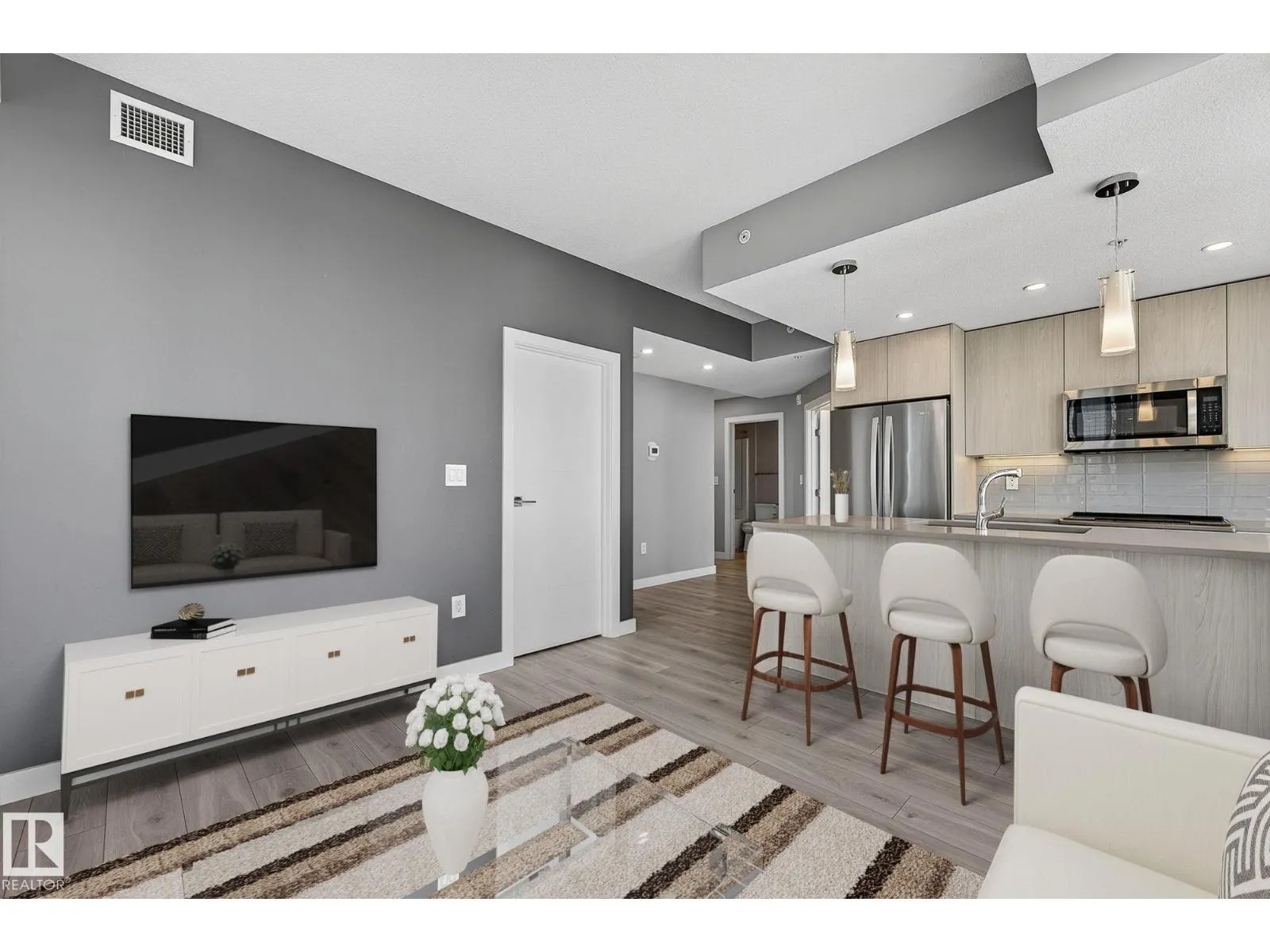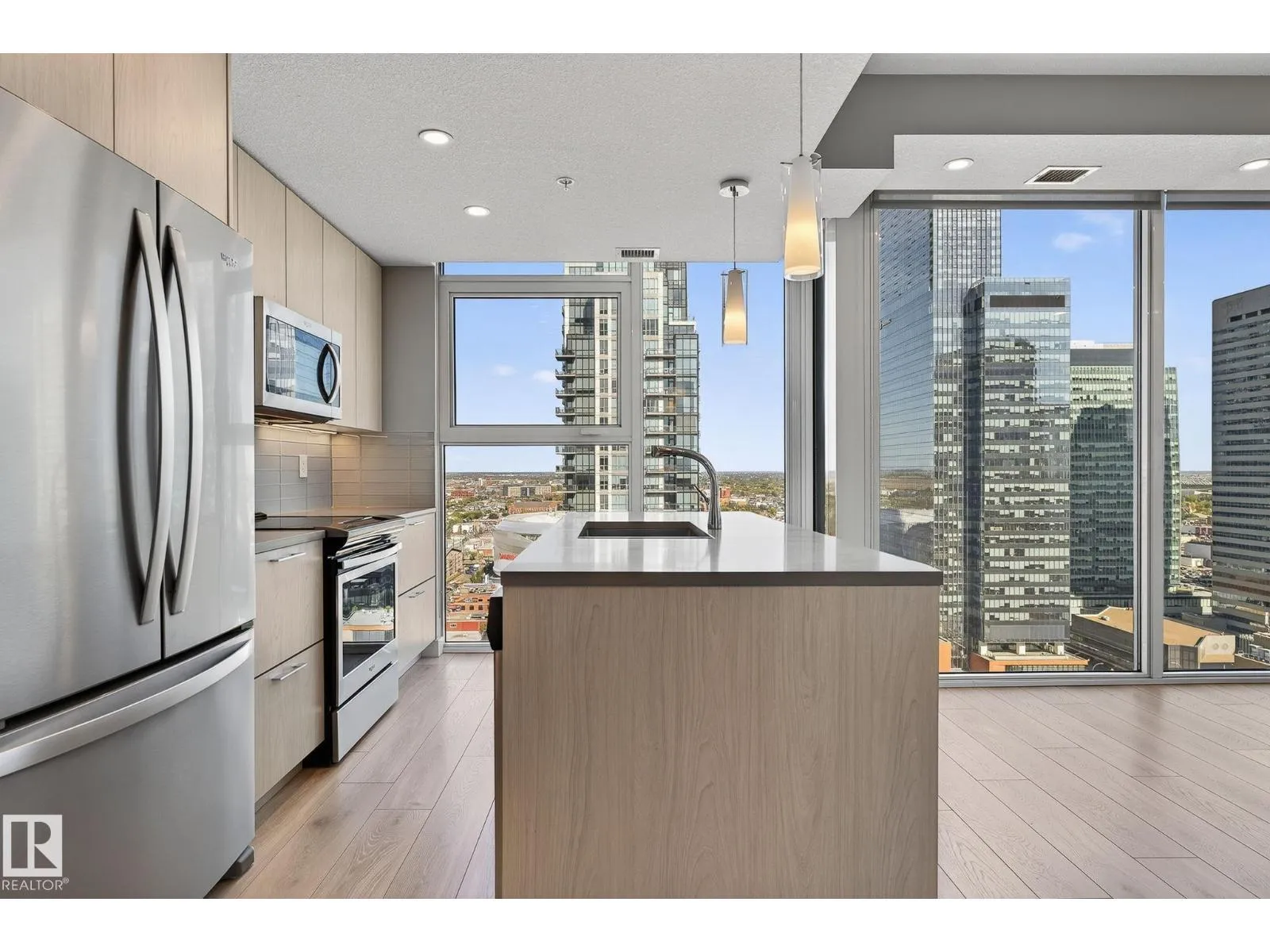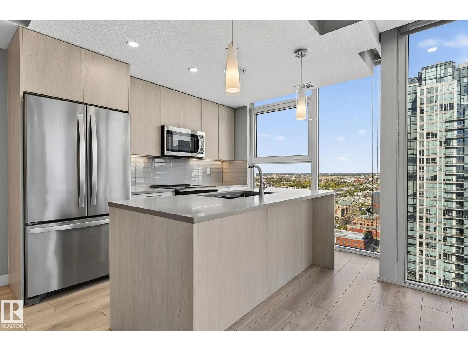 Experience elevated urban living in this stunning 31st-floor condo at the prestigious Encore Tower. Perfectly positioned in the vibrant downtown core, you’re just steps from the Ice District, 104th Street, and some of Edmonton’s finest dining and entertainment. Step inside to be greeted by floor-to-ceiling windows offering breathtaking north to south panoramic views, capturing the beauty of west-facing sunsets and