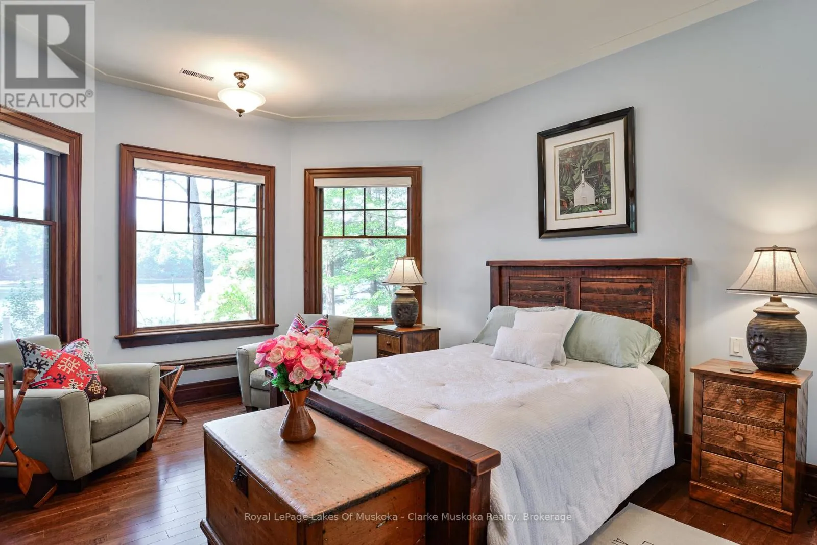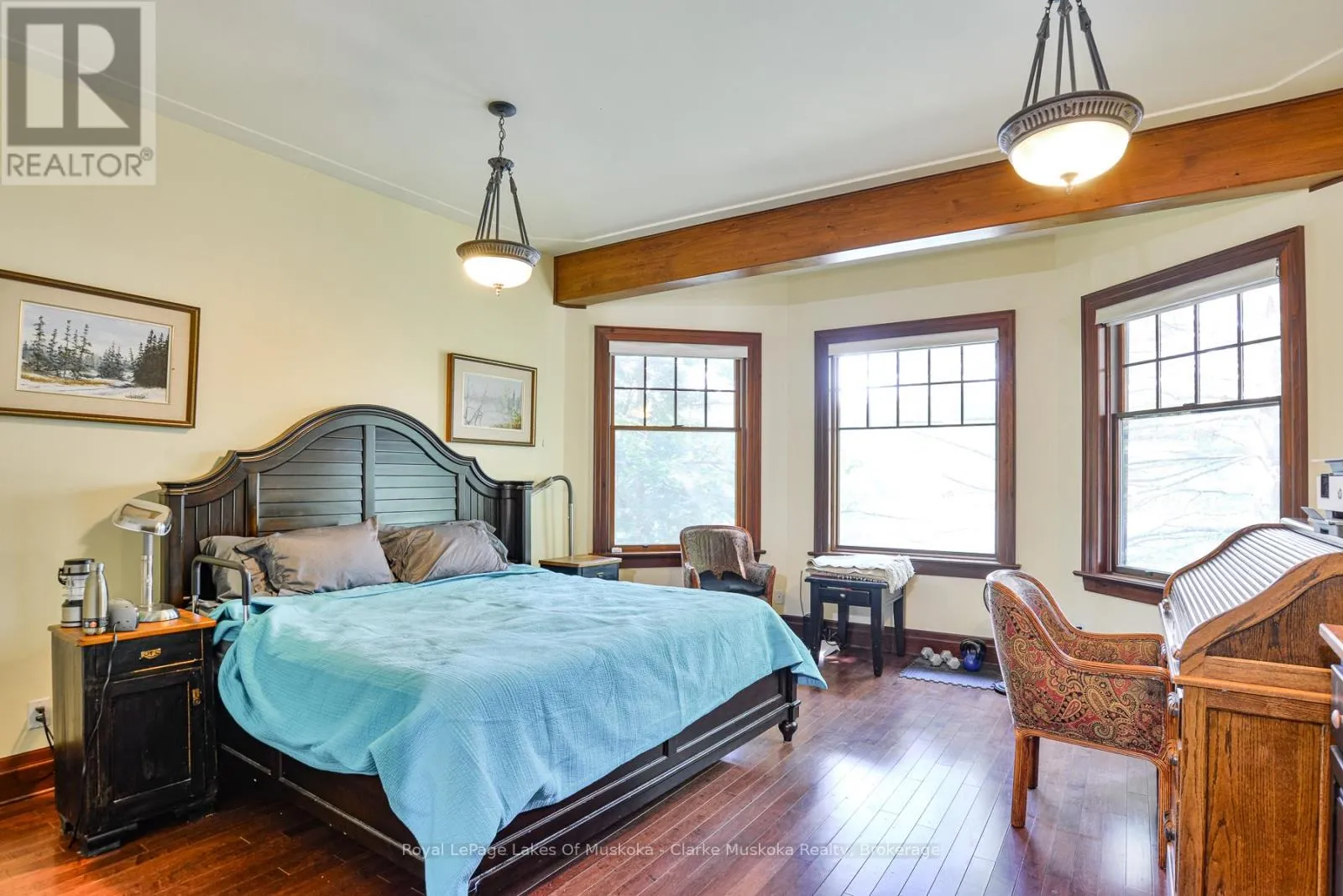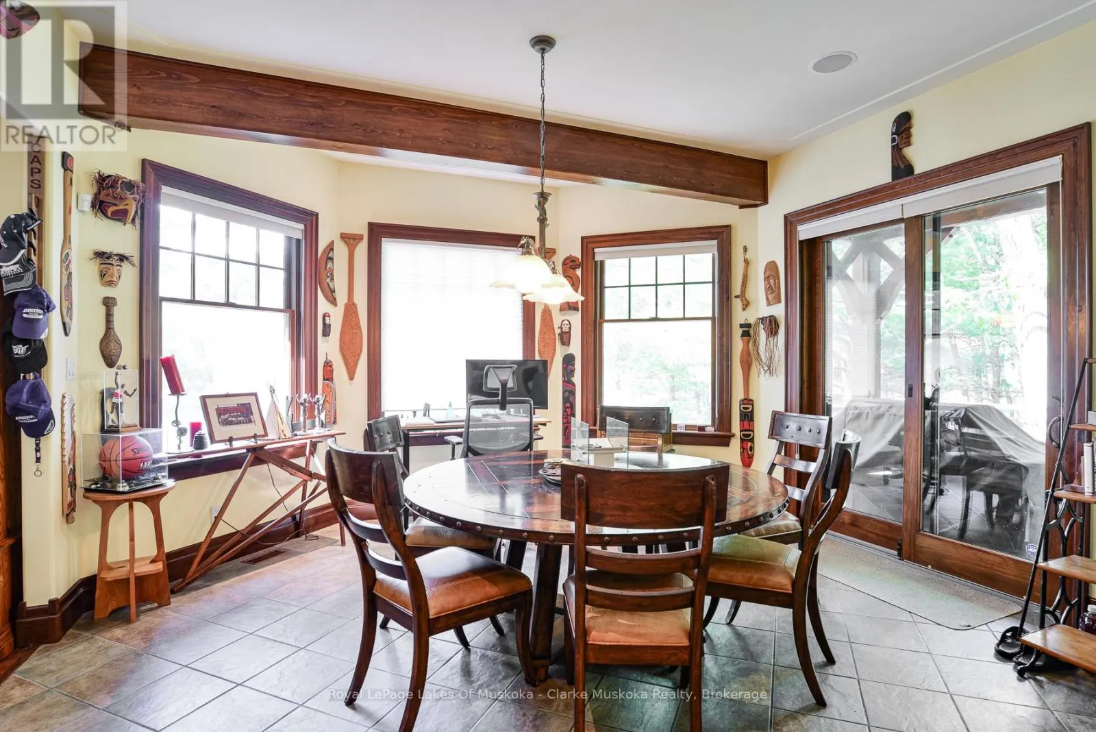 Experience Muskoka living with this beautiful 4-bedroom, 4-bath bungalow situated on 98.43 feet of frontage on Marion Lake. Offering breathtaking views of the calm waters, this property combines comfort, recreation, and convenience in one remarkable package. Inside, the home is designed for both relaxation and entertainment, featuring an indoor gym, private sauna, and a built-in bar perfect for hosting friends