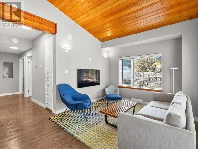 Distinctive Downtown Living! Located in a quiet corner of downtown Whitehorse, this stylish 2-bedroom, 1.5-bath condo offers 950 sqft of energy-efficient living in a boutique 8-unit development with character and charm. Inside, enjoy an open-concept layout with pine-accented vaulted ceilings, large windows, and a cozy living room. The U-shaped kitchen features stainless steel appliances, a peninsula with seating, and a