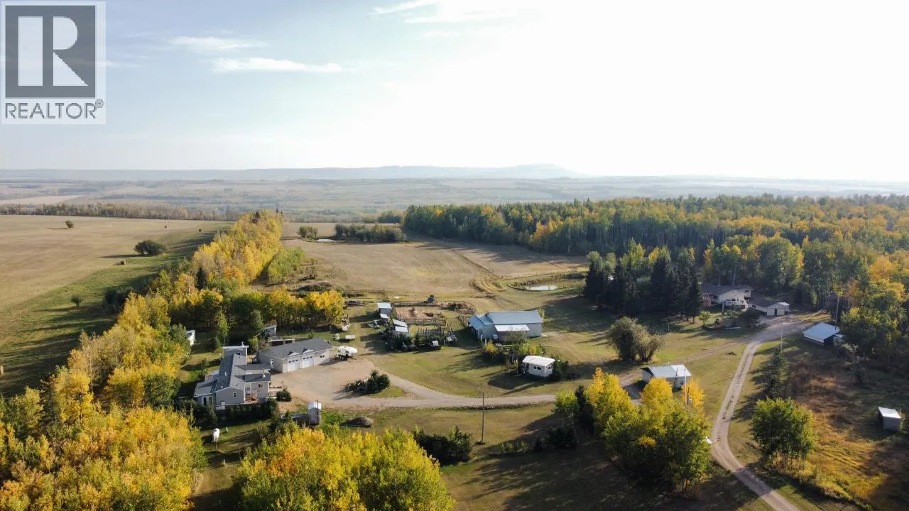 Rare Find! Located only 10 minutes from Dawson Creek, BC is this beautiful 113 Acre property with 2 residences. The Main home features 4 beds, 3 baths, open living/dining/kitchen area, sunroom, and a detached 24′ x 26′ heated double car garage. The main home is heated with a H/E boiler system, air exchanger and new outside wood boiler. The Second
