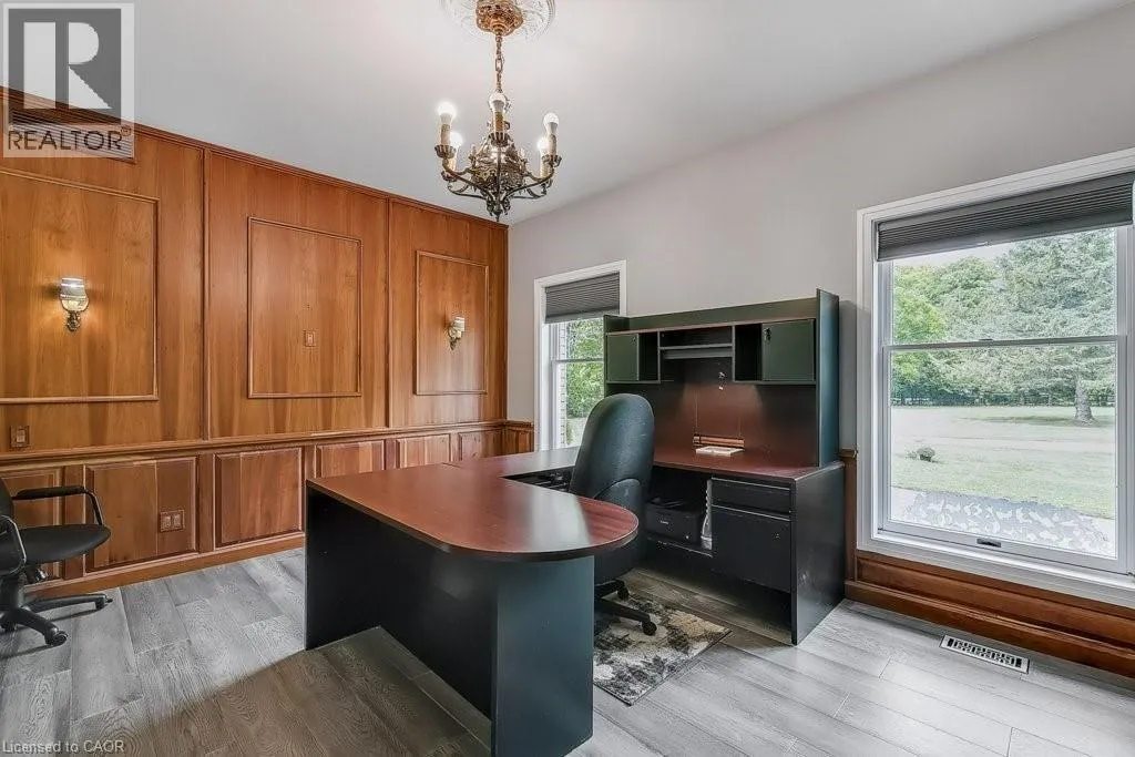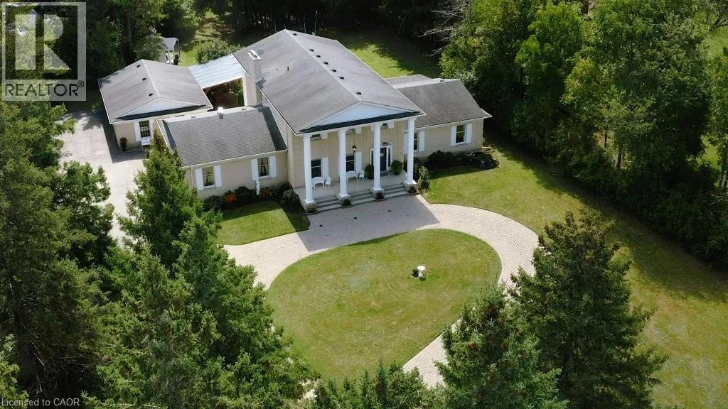 Welcome to this private 4-acre, 4-bedroom, 4-bathroom, 2-storey home in the Township of Puslinch, just minutes to the 401, Aberfoyle School, and Hespler.This property, with its groomed trails winding through 4 private acres, with Puslinch Lake nearby, Puslinch Golf Club and the Puslinch Tract Conservation Area with 18 km of trails directly across the street, this property blends tranquillity, convenience,