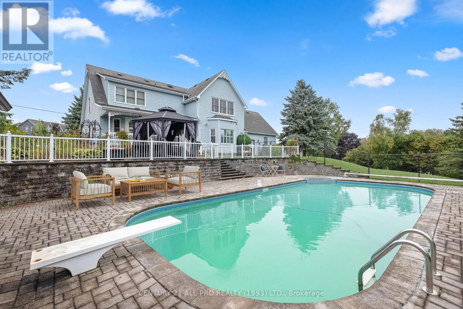 Are you looking for an executive home that offers quality with loads of space on 3 floors? Beautiful kitchen with granite counters with stainless steel appliances with adjoins walkout to backyard with Inground saltwater heated pool. Enjoy sitting on a covered front porch 8×42. This home has a grand entrance with spiral staircase. Other main floor features include laundry area,