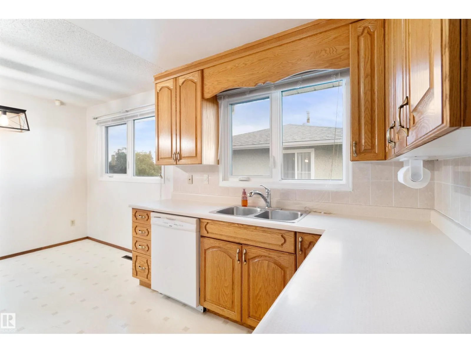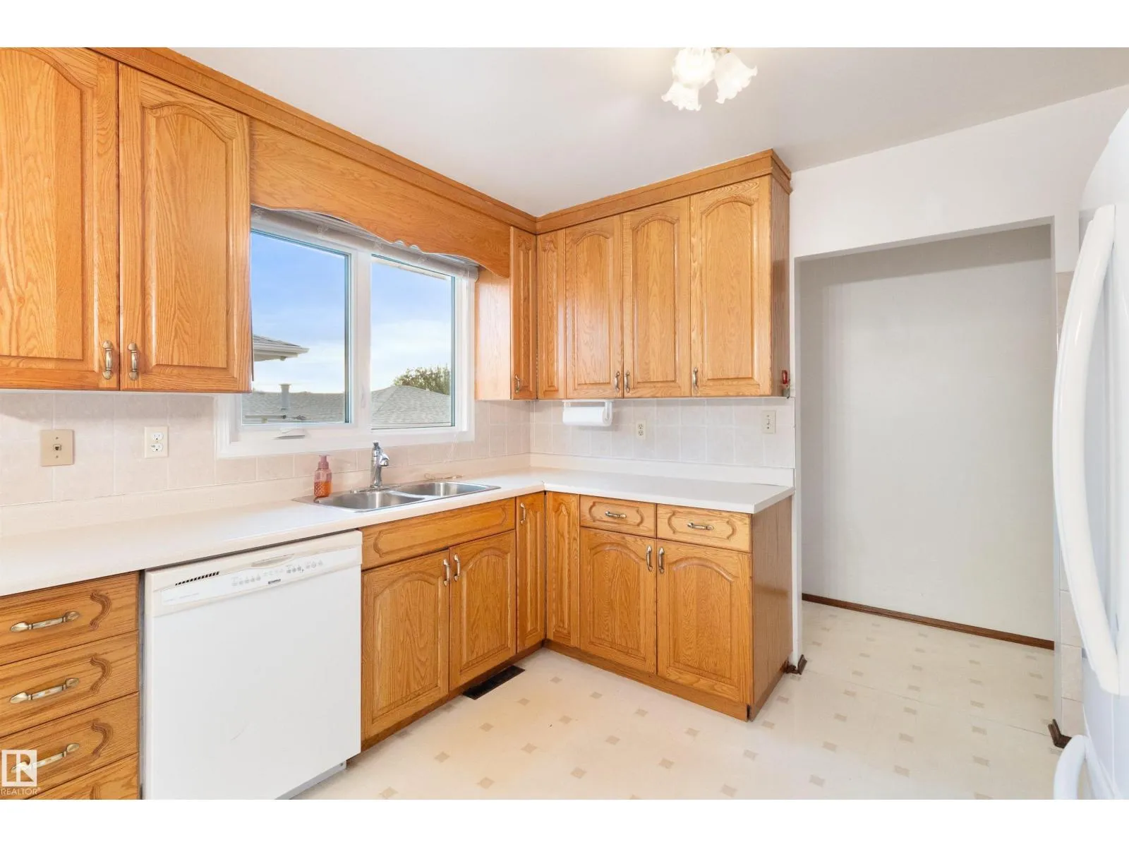 Charming 995 sq. ft. bungalow in the heart of Balwin! This well-kept home features newer windows, a double detached garage with breezeway, and side parking pad. Inside, the bright living room showcases hardwood flooring, while the kitchen offers oak cabinets, a newer fridge, and updated tap. The main floor includes two bedrooms with lino flooring and a primary bedroom with