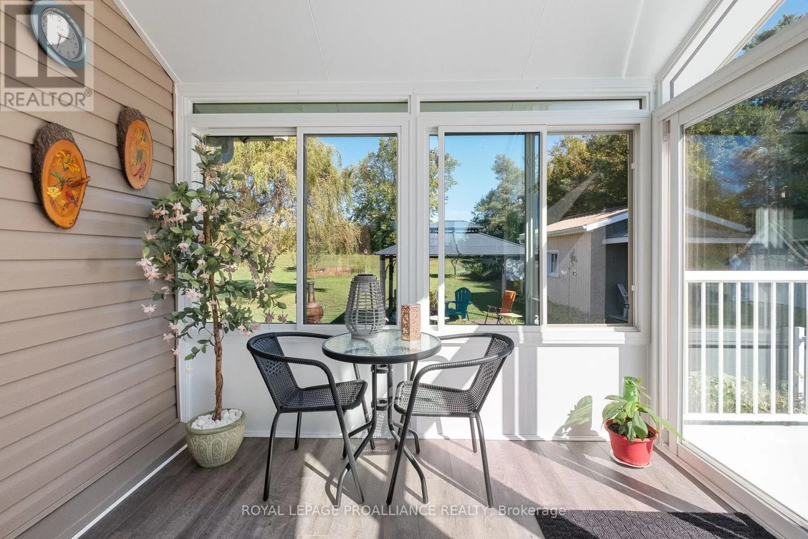 +"PublicRemarks": "When Location Tops Your List - This One Delivers! Set on a private, beautifully landscaped lot just minutes from Cobourg's beach, marina, golf, hospital, shopping, dining, and 401 access, this meticulously maintained raised bungalow offers the perfect blend of country charm and town convenience. Step inside this bright and updated 2+1 bedroom, 2-bathroom home and be instantly impressed. The modern gourmet kitchen features granite counters, extensive custom cabinetry, and a built-in desk perfect for everyday living and entertaining. A stunning 4-season sunroom with cathedral ceiling, heat/AC, and wraparound windows opens to a unique upper deck with views of Lake Ontario ideal for morning coffee or sunset gatherings. The lower level offers a generous family room, freshly renovated 3-piece bath, bright third bedroom, and a large laundry area with direct entry to the 1.5-car garage. Enjoy quality finishes throughout, including hardwood, tile, and luxury vinyl plank flooring. Energy efficiency is top-notch with a ground-source heat pump and premium Water Furnace system offering substantial hydro savings. Outside, the charm continues with perennial gardens, fruit trees, berries, asparagus beds, and a steel gazebo with custom rubber flooring. Three custom sheds (10x18, 8x10, 8x8) provide excellent storage. Additional upgrades include a lifetime metal roof, freshly paved drive, newer windows, high-end kitchen appliances (10K+), dusk-to-dawn motion lighting, and security system. Full list of features/upgrades attached. Move-in ready and truly special this is the one you've been waiting for! (id:62650)"