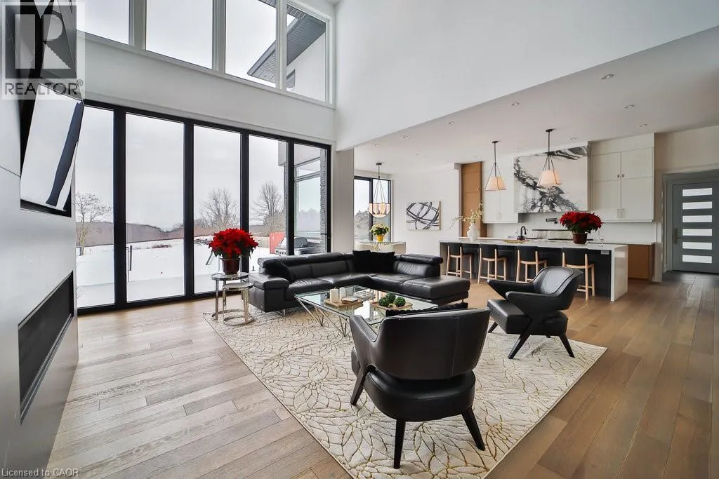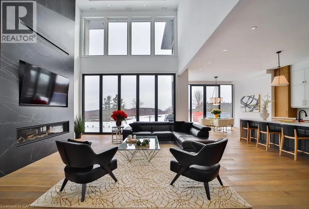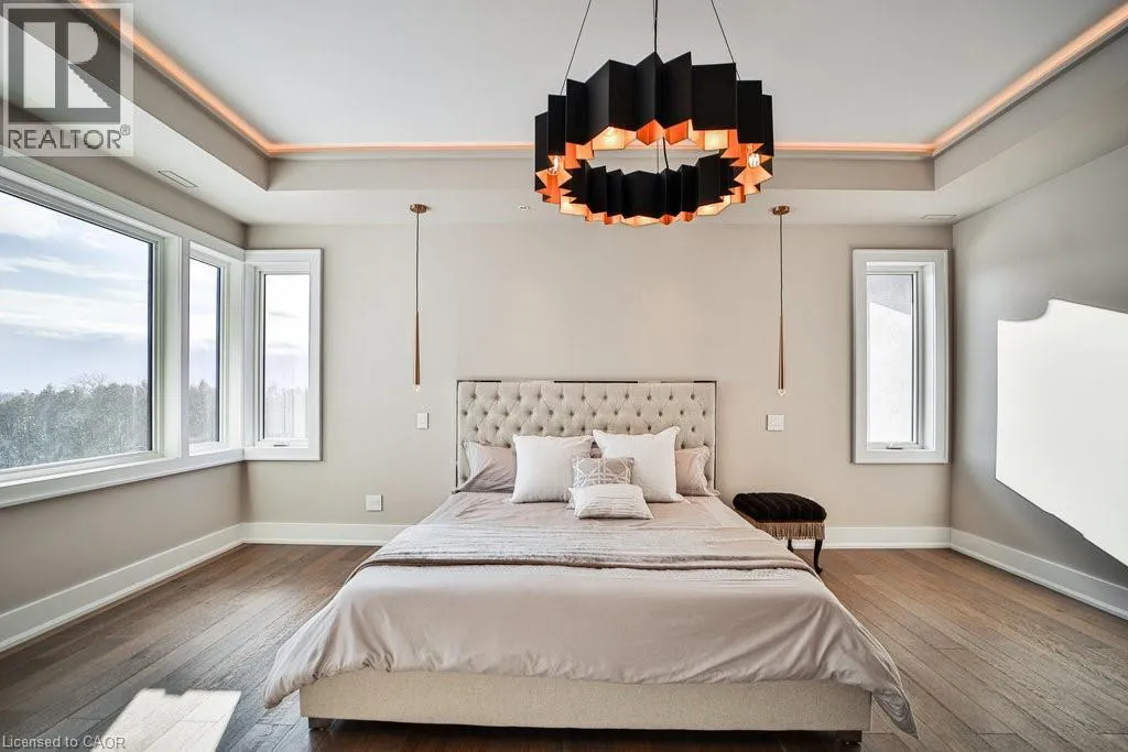 Incredible one year old modern home, 4650 sq ft of above grade living space, with 1700 sq ft finished walk up basement. Enjoy the beautiful views of Escarpment and Lake Ontario, backing on to the Bruce trail and farm land. Five bedrooms all with ensuits, a Nanny suite with separate entrance. Three extra powder rooms (total 8 bathrooms) for convenience.