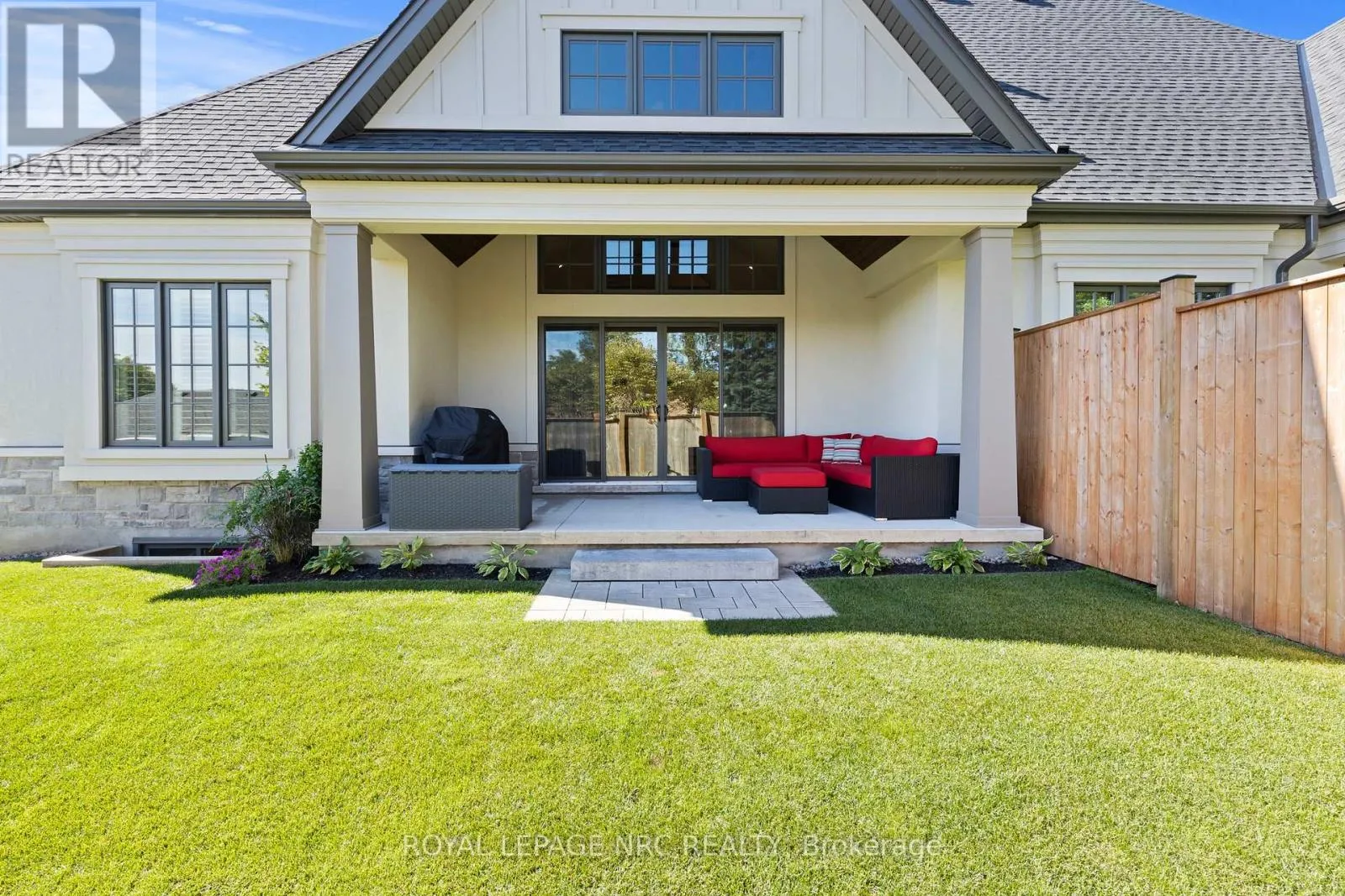 A rare offering in prestigious Canboro Hills, this end unit bungaloft townhome by DeHaan Homes delivers over 2,400 sq. ft. of refined living space where every detail has been designed with intention. From its striking stone and stucco exterior to the soaring ceilings and expansive windows inside, the home captures a sense of elegance and comfort at once.The great room