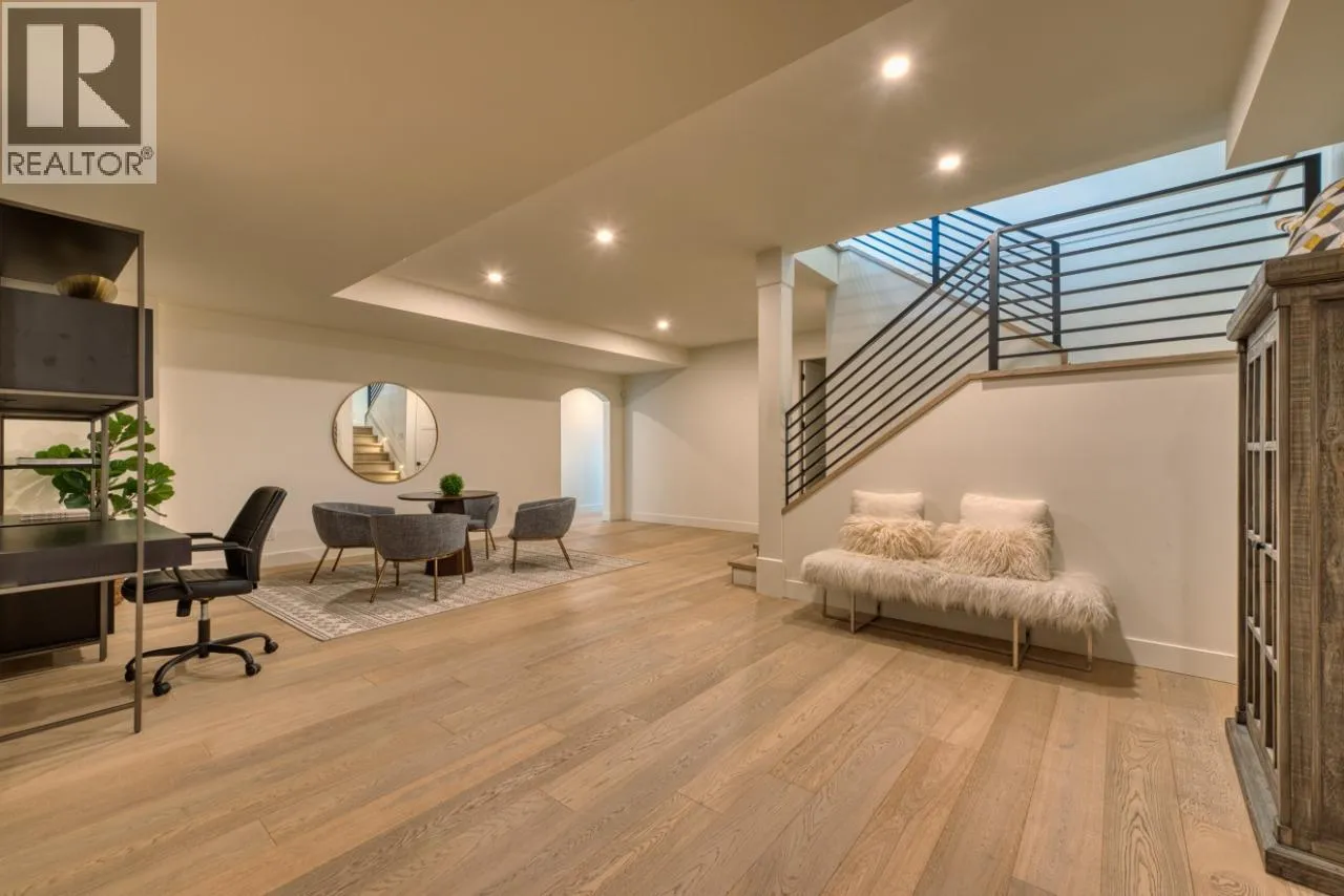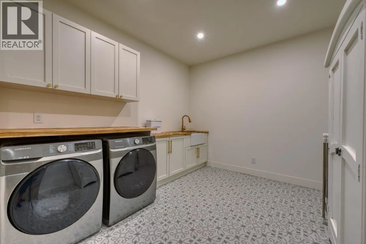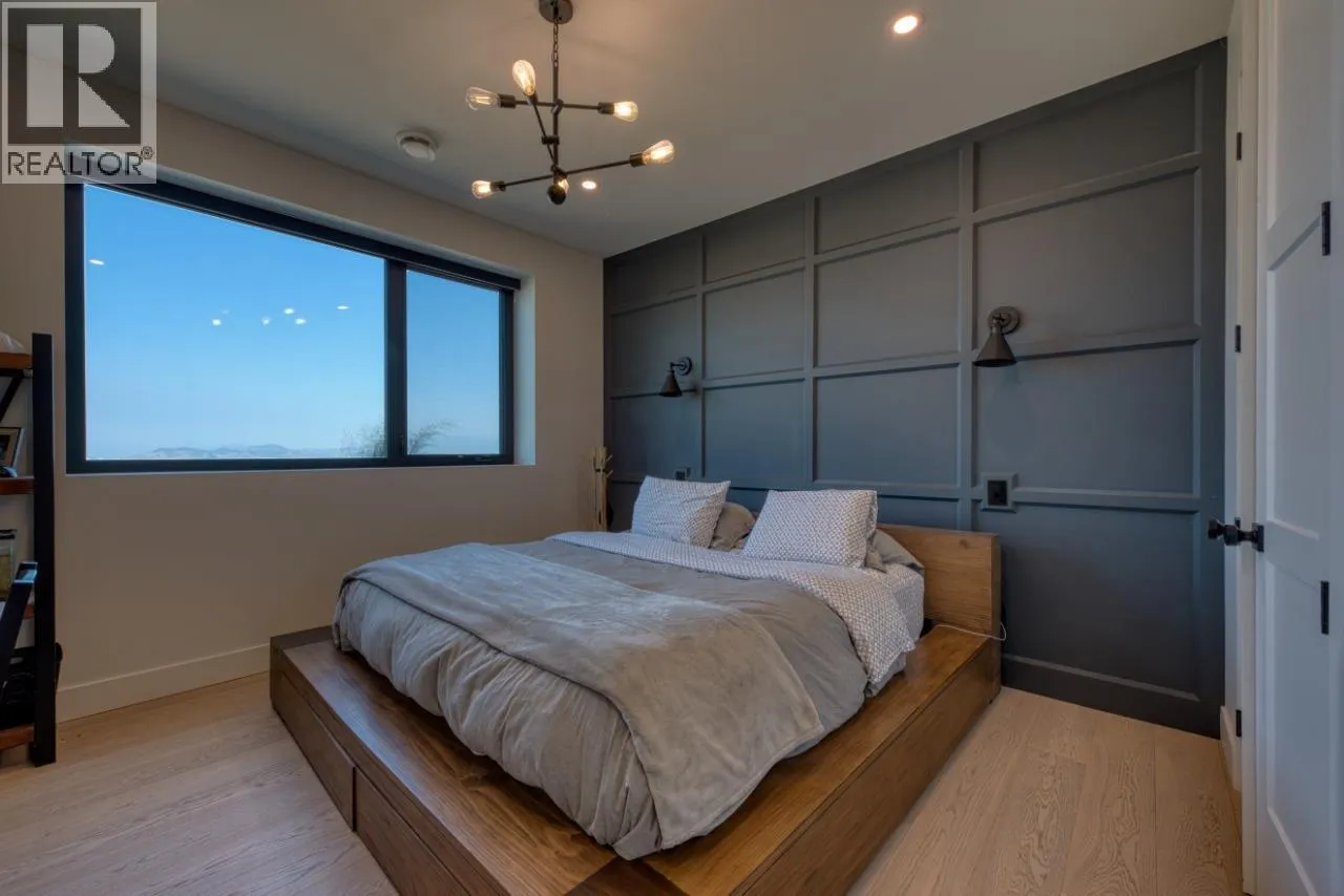 5 bedroom, 4.5 bathroom ranch-style estate located in Kelowna’s Kettle Valley community. Built in 2022, this gated modern farmhouse features over 5,500 sq. ft. of living space with lake, mountain, and city views. The main level includes an open concept layout with large island, butler’s pantry with dual refrigerators, two dishwashers, three ovens including an air-fryer, and a gas range.