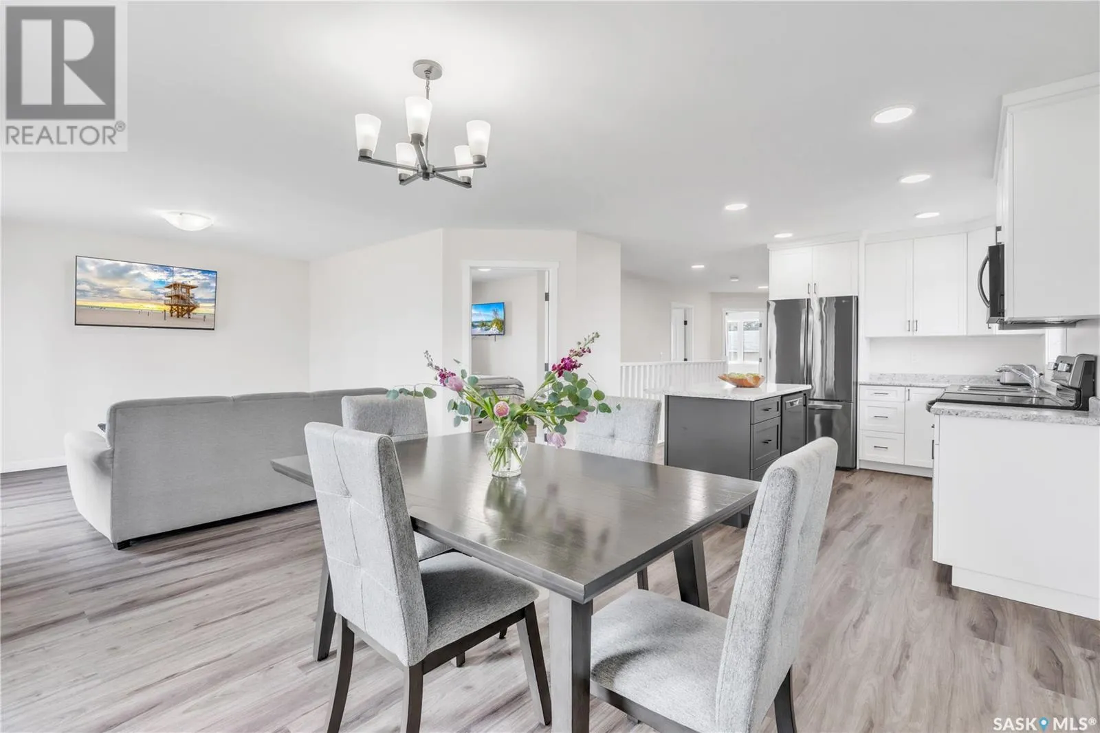 Experience a brand new home! This home was started in 2023 and completed in 2024. Step inside the main floor and be greeted by a stunning, modern kitchen with floor-to-ceiling white cabinetry, offering abundant storage and a large island for all your culinary essentials. The open-concept design connects the kitchen to the spacious living and dining areas, creating an ideal