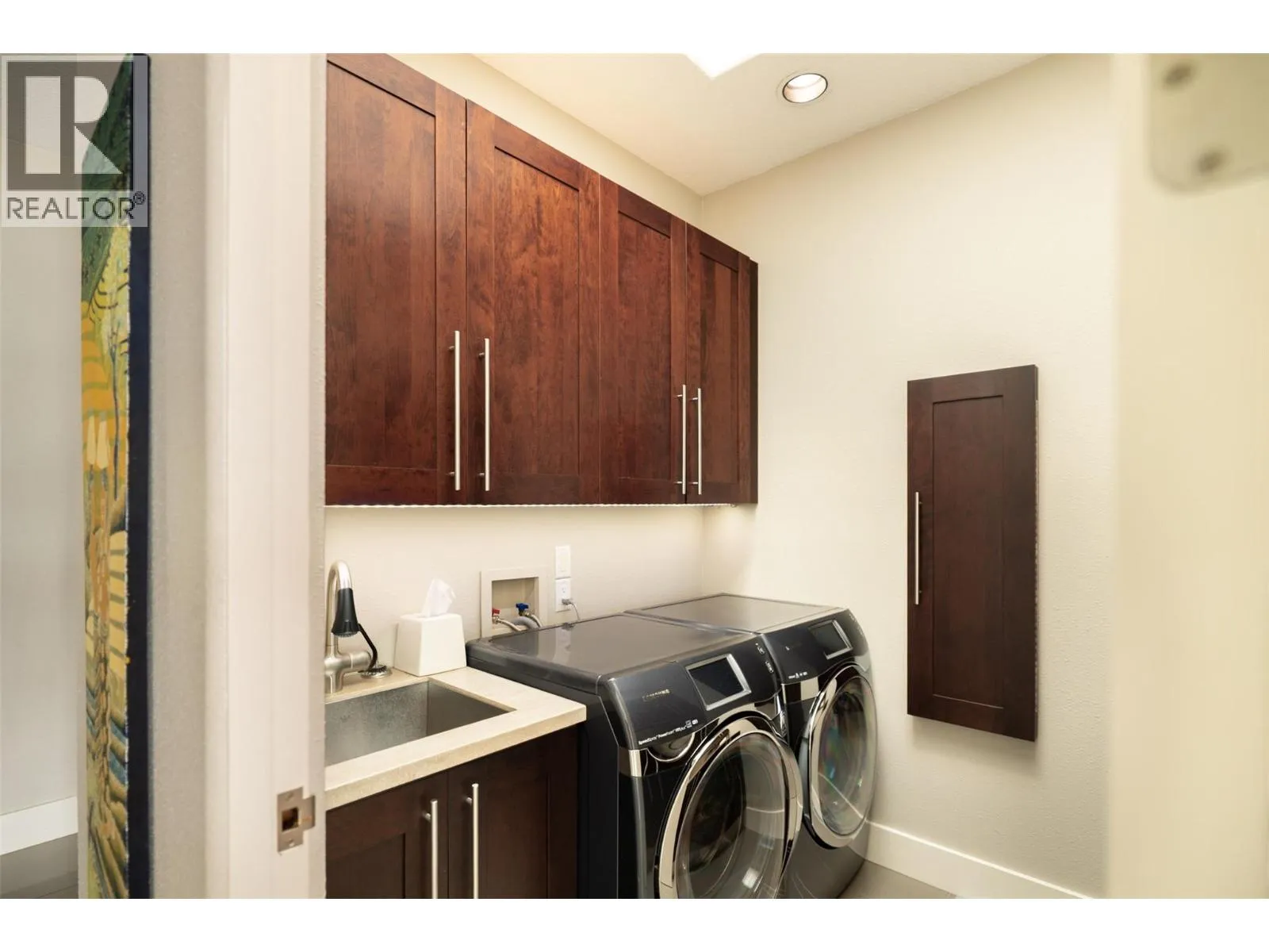 Rare offering on the shores of Okanagan Lake. This one-level lakeshore home in Kelowna’s coveted Lower Mission offers modern comfort with exceptional privacy. Set at the end of a quiet no-thru road, the .49-acre property boasts over 105 ft of level beachfront, mature landscaping, and a shared dock with boat and Seadoo lifts. Spanning over 3,600 sq ft, this 3-bed,