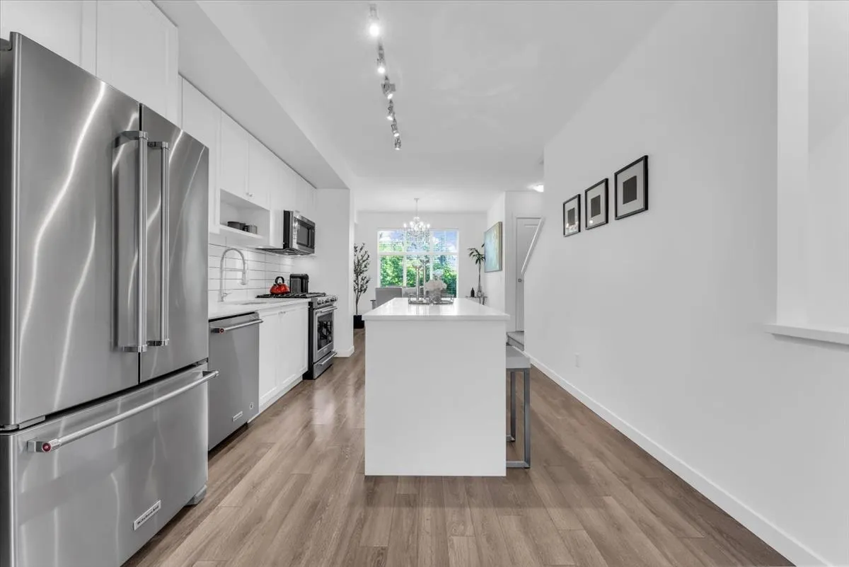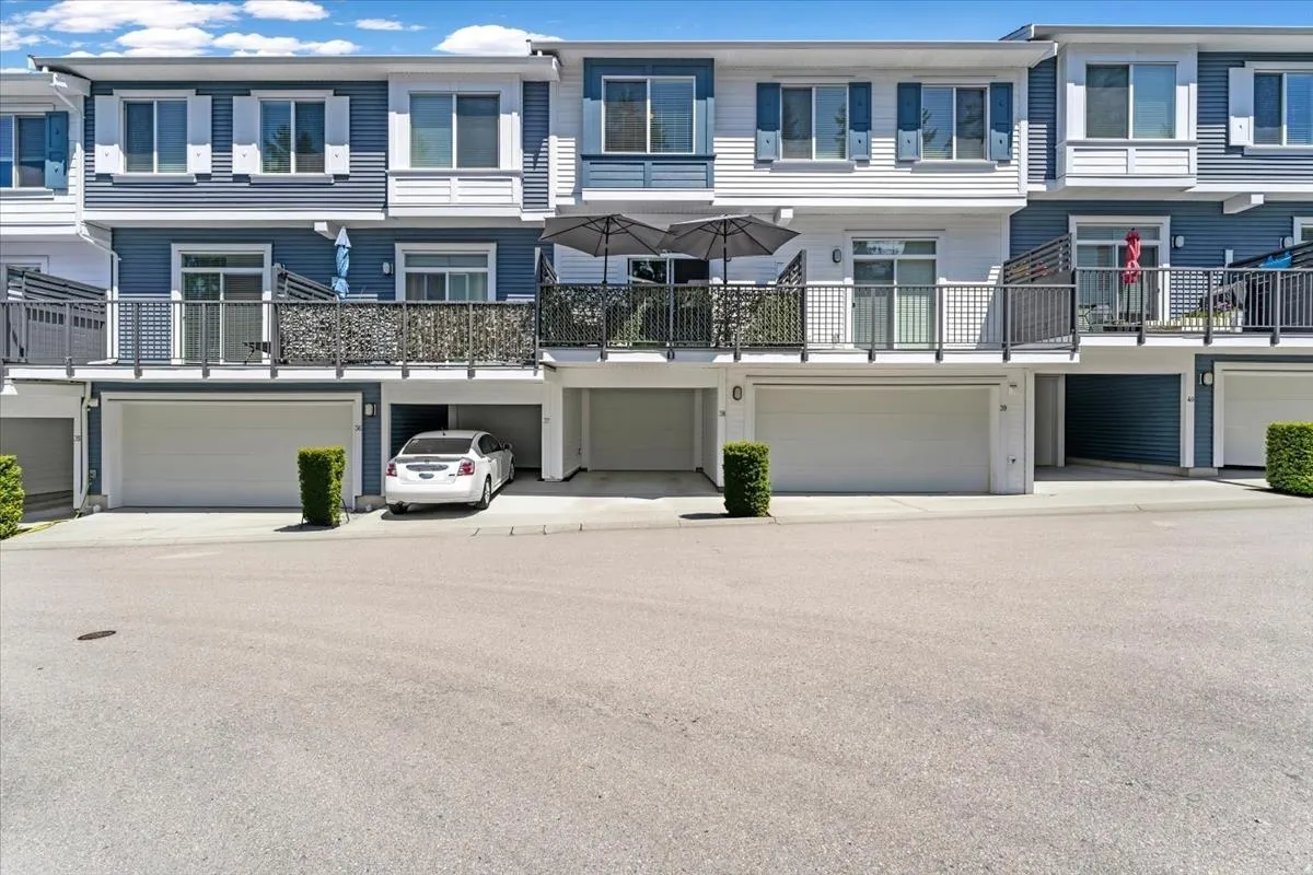 38 15268 28 Avenue Surrey V4P 0E8. Welcome to Old School by Dawson + Sawyer. This 3 bed, 3 bath home features TWO oversized PRIMARY BEDROOMS with PRIVATE ENSUITES. The open-concept main level showcases SLATTED WALLS, quartz island, and stainless steel appliances. Step out to a SUNNY balcony for BBQs or lounging. Downstairs boasts a SLEEK EPOXY GARAGE with extra