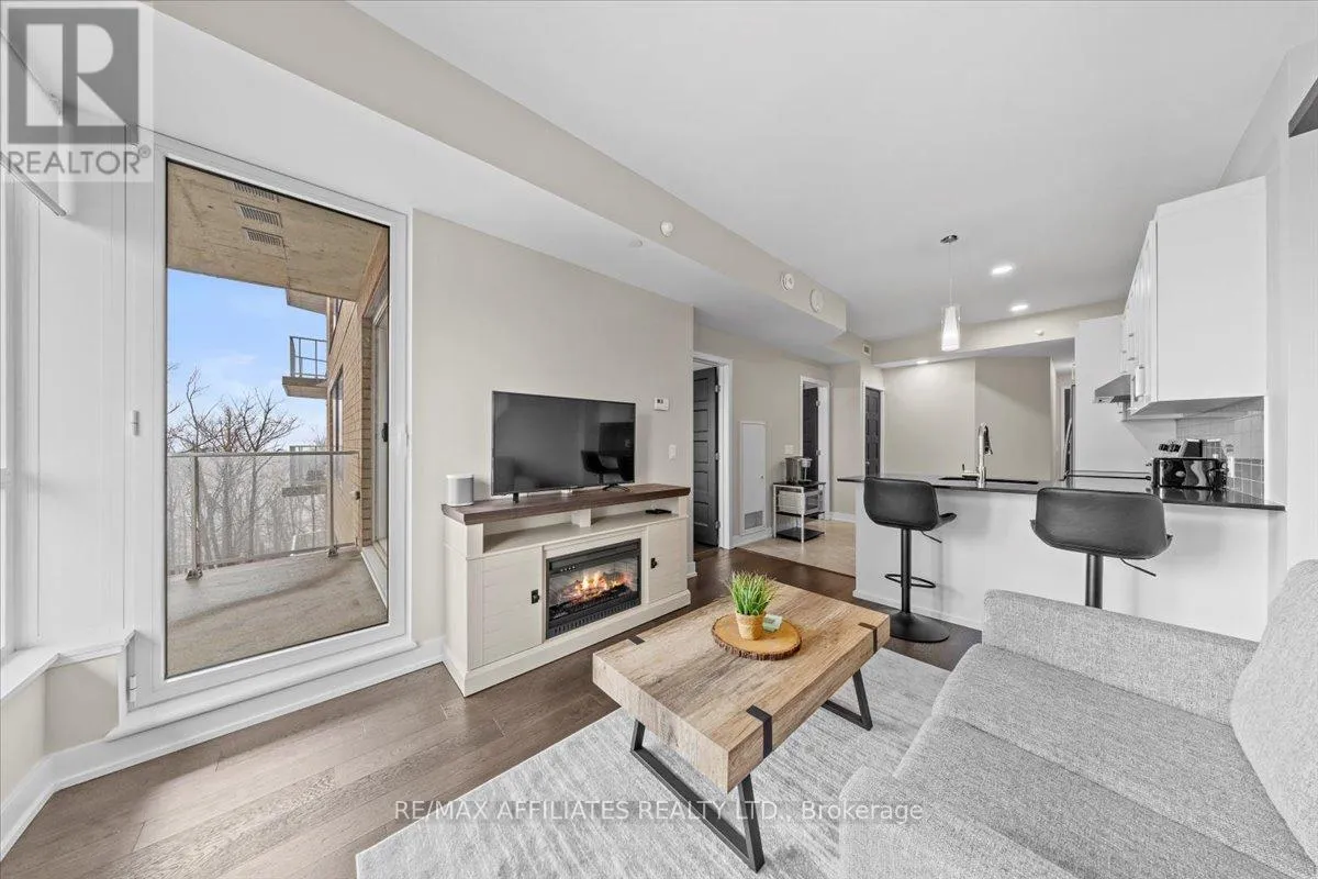 Lifestyle is what this condo is all about! Step into modern elegance with this stunning condo featuring a well thought open-concept layout. Long entrance w/ 12 x 24 ceramic tiles, leading to a bright living space with pre-engineered hardwood floors and expansive windows that flood the room with natural light with views of the Ottawa river. The shaker-style cabinetry, granite