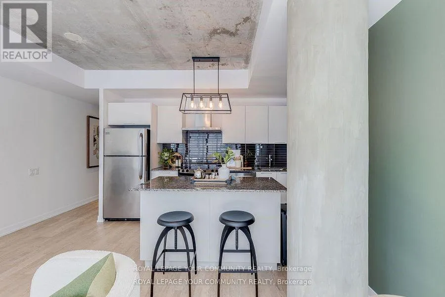 Motivated Seller! Experience Urban Living In Vibrant King West Neighbourhood! Highly Sought-After Boutique Building In The Heart Of The City with Lower maintenance fees $394.54. Many Trendy Restaurants, The Well, Stackt Mkt And Nightlife Nearby! Open Concept Layout With 9 Ft. Exposed Concrete Ceilings. Bright, South Facing Floor To Ceiling Windows. Modern, Professional Design Finishes Throughout. Contemporary White Kitchen With