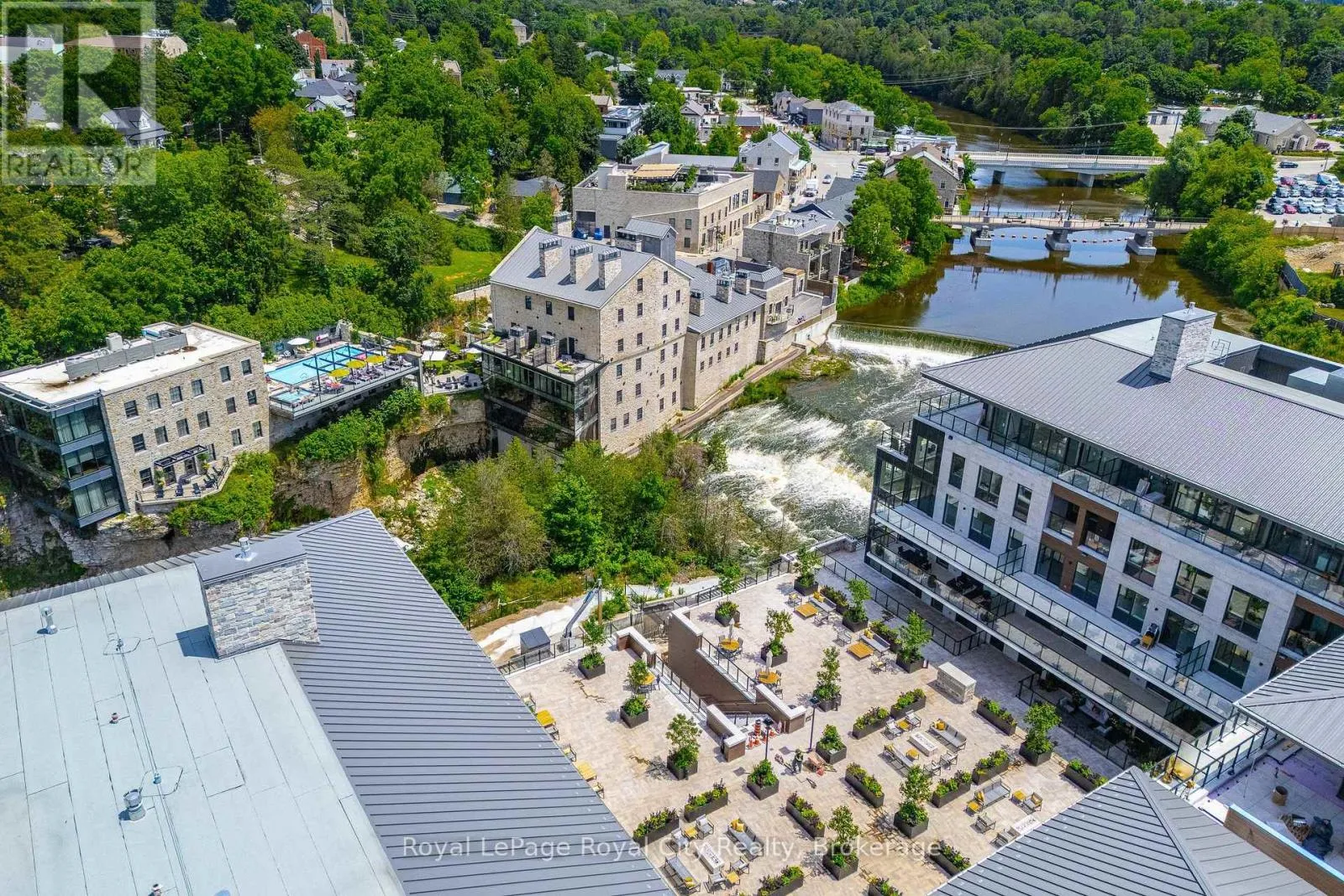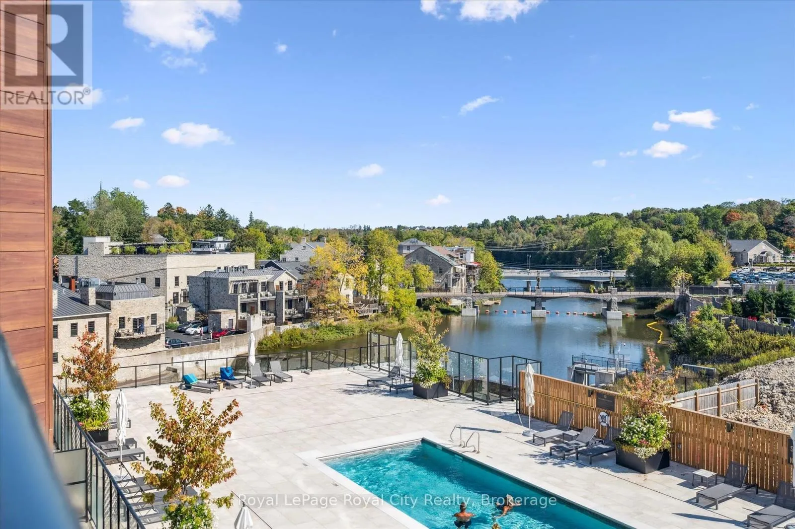 A CONDO WITH AN INCREDIBLE POOL & DOWNTOWN RIVER VIEW ! Amazing 3rd floor 1 Bedroom + Den model with high end finishes throughout. Two full baths. You are going to love the stylish colour palette in this one. And NEVER LIVED IN! Elevated to enjoy views of the River, Downtown Elora landscape and pool while maintaining privacy on