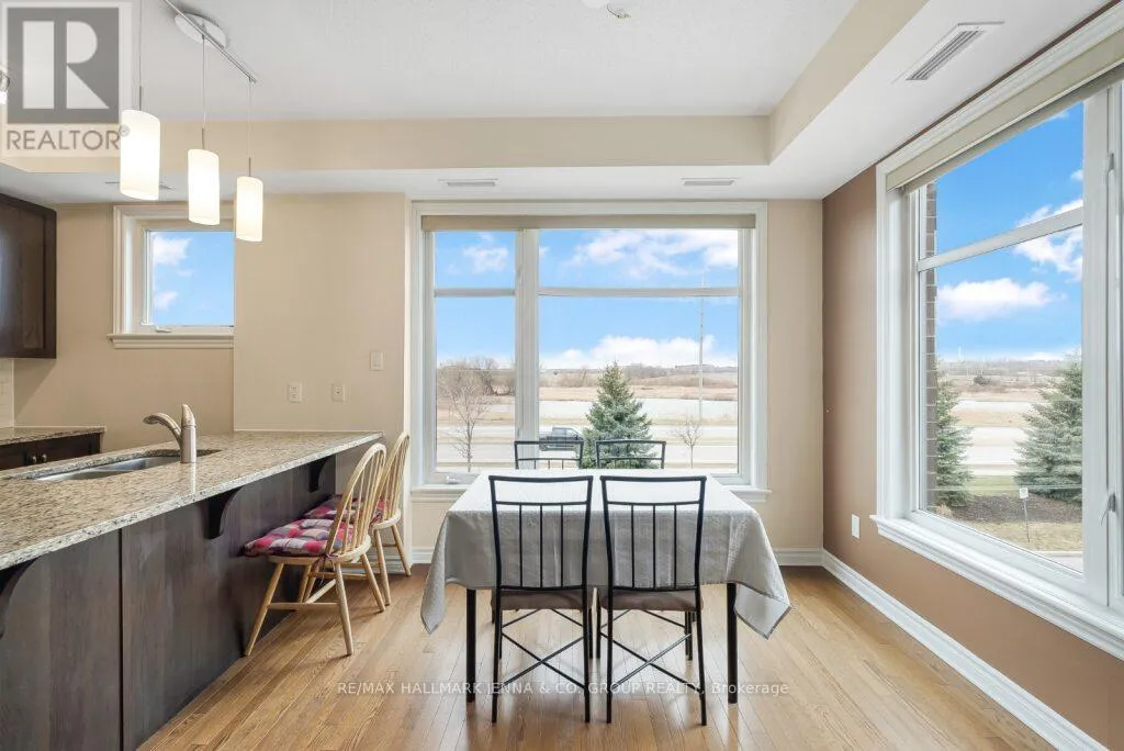 Welcome to this bright and spacious 2-bedroom, 2 bath + den corner unit in the heart of Kanata Lakes! This open-concept layout offers hardwood floors throughout the main living space, a large island with breakfast seating, granite countertops, stainless steel appliances, and rich espresso cabinetry. Enjoy abundant natural light from the oversized windows in both the dining area and living