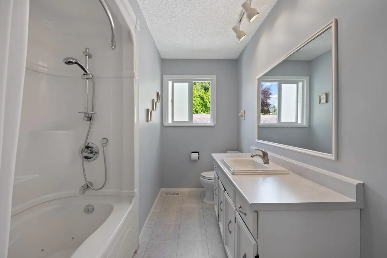 White Rock central location. Corner property, Stevens Street & Russell Avenue. Well built home 2,793 SF. Large 619 SF sundeck on the top level. Bright living space above, all new H/e windows, South East corner. Three bedrooms up and two full bath with laundry. Great Floor plan for a multi generational home – to home share: licensed two bedroom suite,
