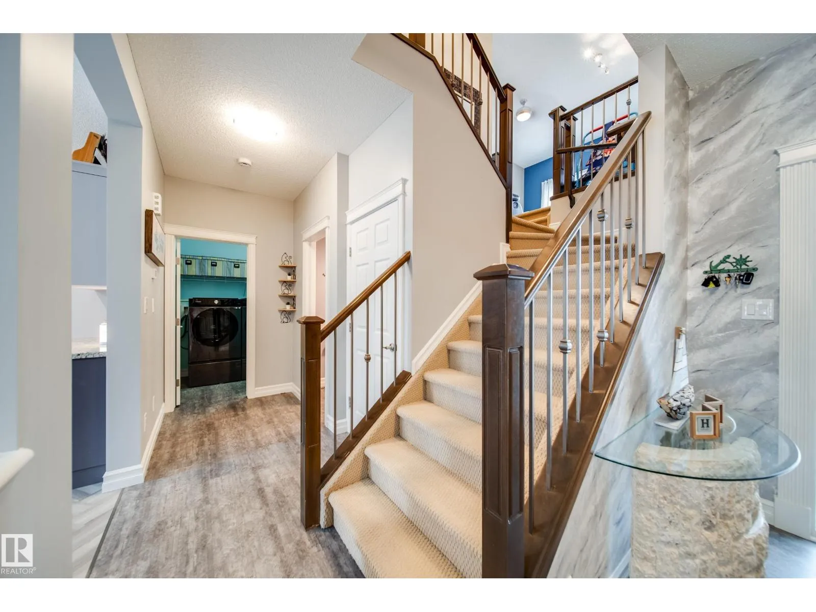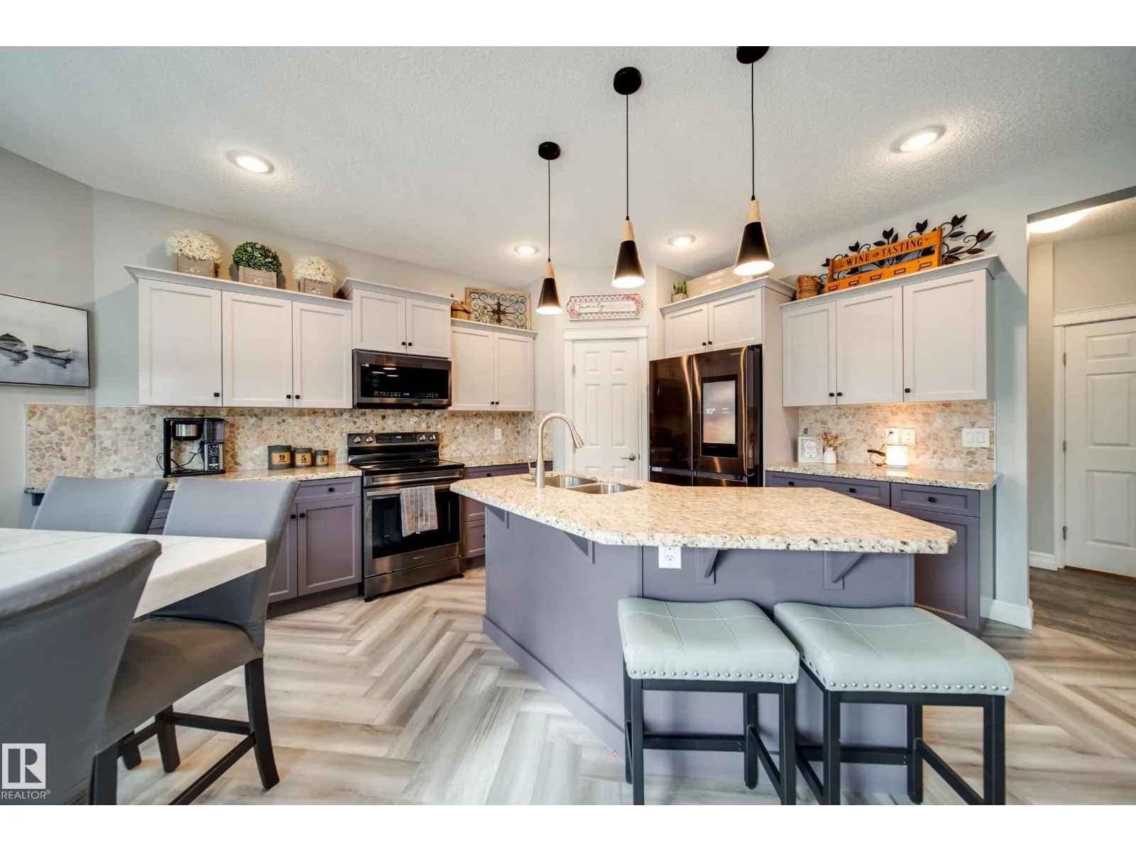 Backing onto a peaceful WALKING TRAIL, this stunning 2010 Landmark built home blends style, comfort & functionality w/over 2000 sqft of living space. Inside, soaring 9ft ceilings, herringbone LUXURY vinyl plank, & GRANITE counters set the tone. The chef’s kitchen w/plenty of prep space,storage & upgraded appliances, opens to a BRIGHT living area w/stone facing GAS fireplace & dining rm