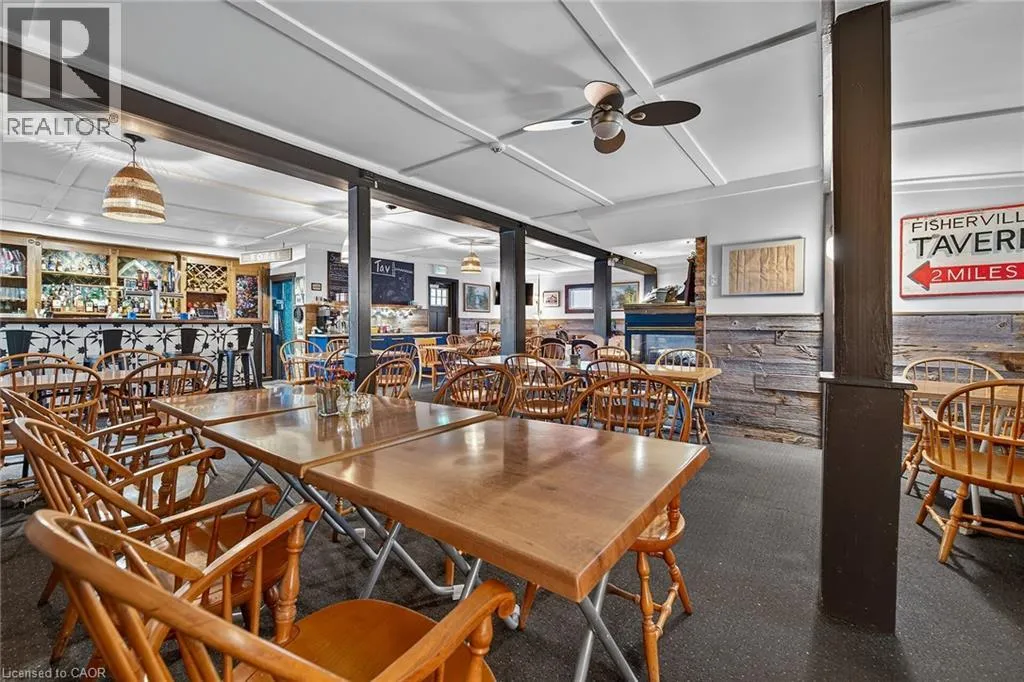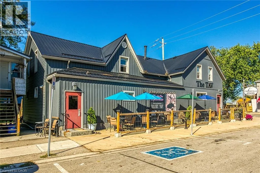 Aspiring Restaurant Entrepreneurs, Investors or Business Adventurers – Welcome to “The Tav” located in charming Haldimand County Hamlet of Fisherville – relaxing 45 min commute south from Hamilton in-route to Lake Erie. This local historic landmark established in 1890, initially built as a hotel for travelling salesmen, has since becoming a dining hub for loyal, year round clientele base –
