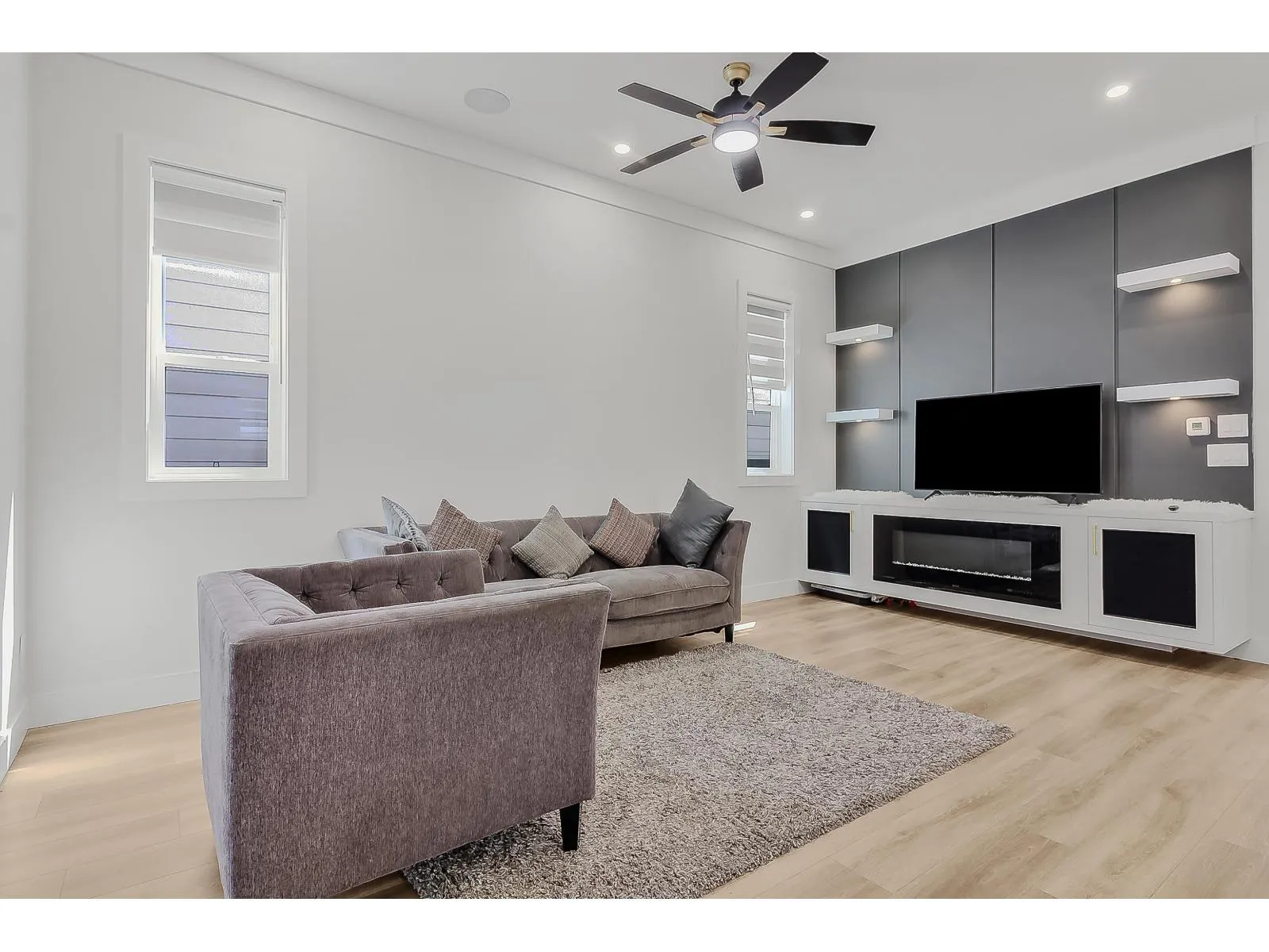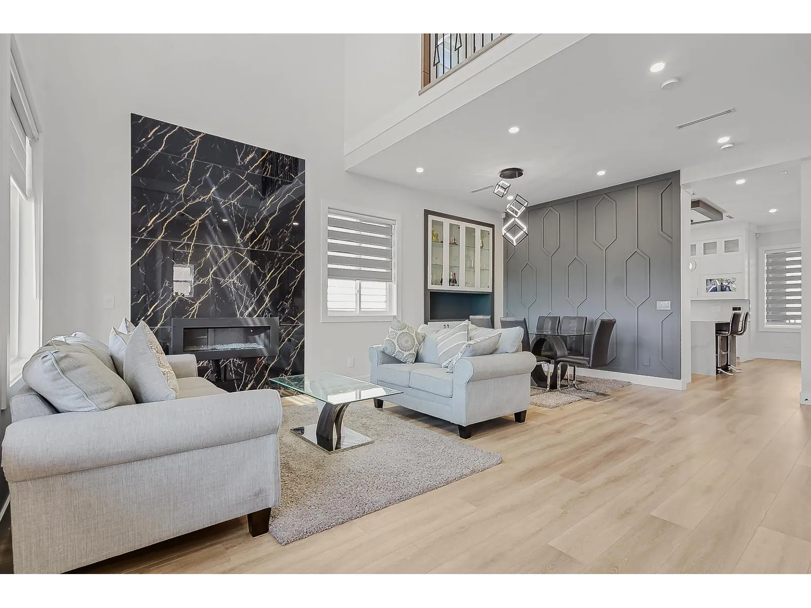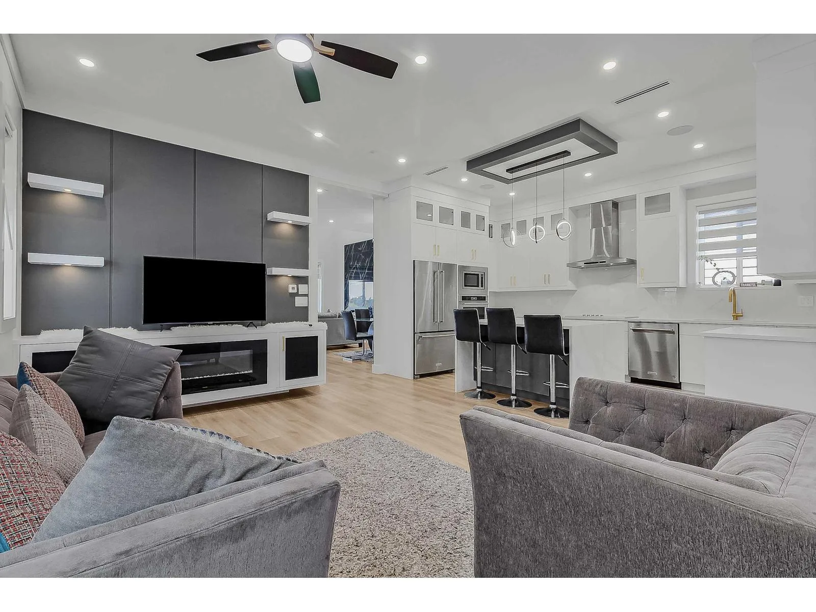 Stunning custom-built 5 bed, 5.5 bath home in the heart of South Surrey. The main floor boasts an open-to-below design with a stunning feature wall and gas fireplace. Enjoy gourmet cooking with KitchenAid S/S appliances and a gas range in the wok kitchen. The family room includes a built-in entertainment unit, speakers, and a second fireplace. Upstairs offers a primary