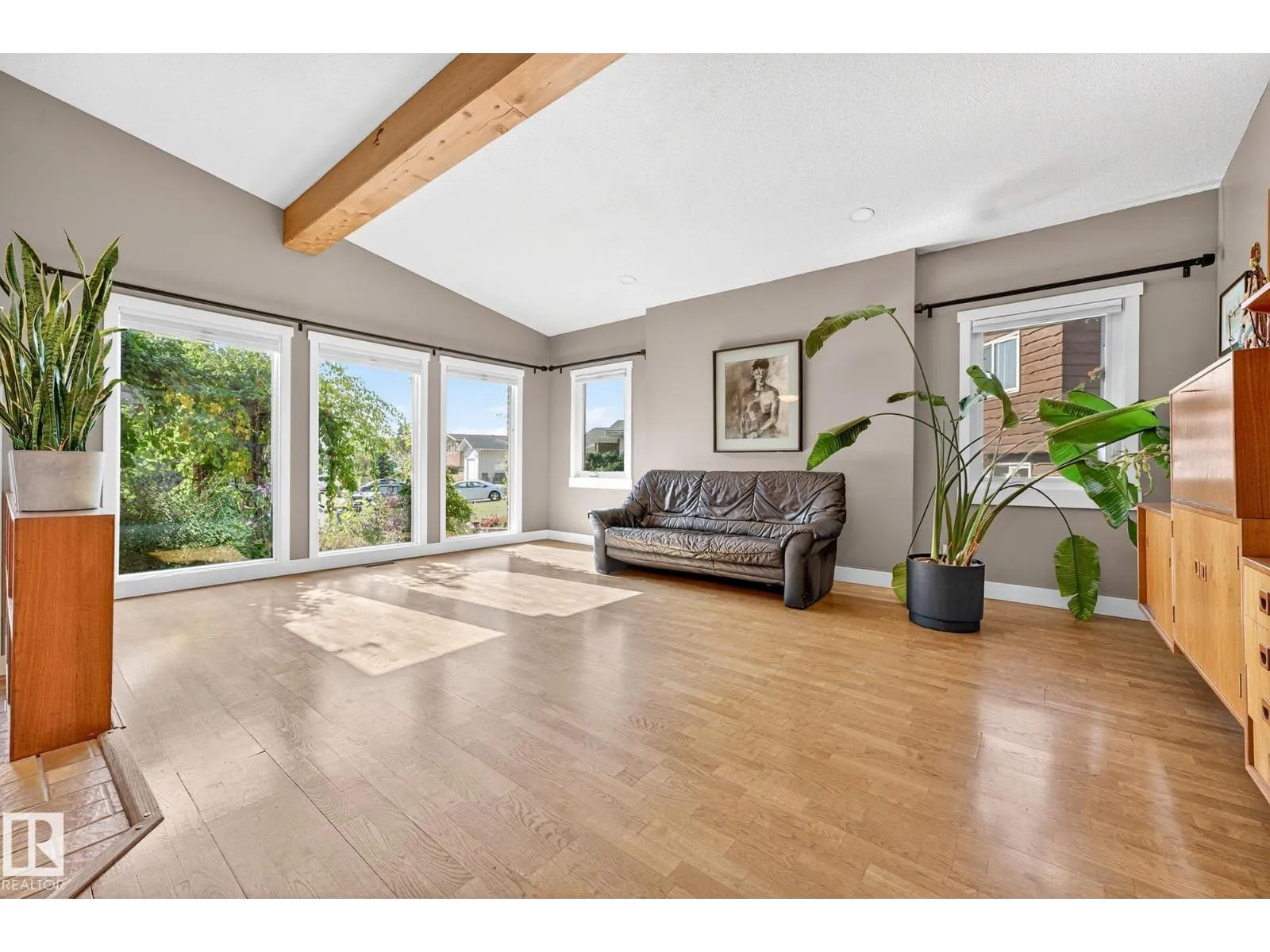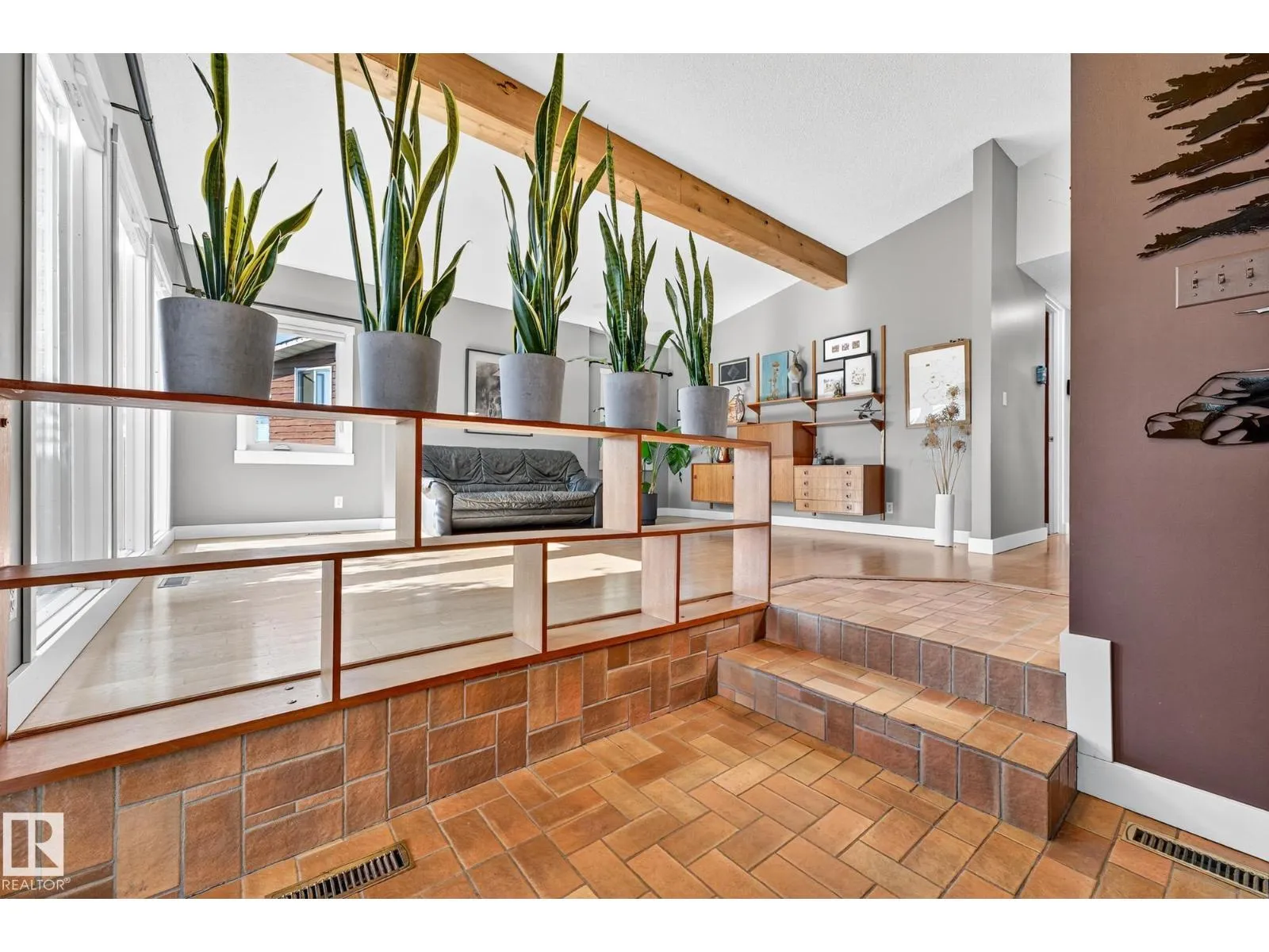This UNIQUE mid-century modern bungalow is more than just a home. Lovingly built & maintained by its original (sole) owner, every detail reflects craftsmanship, timeless style, & enduring quality. The open-concept floor plan is enhanced by cedar plank ceilings, exposed beams, & 8’ doors that create a sense of space & light. Custom cabinetry, built-in shelving, & architectural room dividers add both