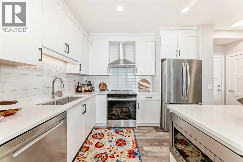 Welcome to 85th & Park; where modern design meets elevated condo living in the sought-after community of Aspen Woods/Springbank Hill. Built in 2023, this beautifully upgraded 2 bedroom, 2 bathroom condo combines stylish finishes with everyday convenience. Step into a bright, open layout featuring quartz countertops, a large central island, and premium stainless-steel appliances with a chimney hood fan. Durable
