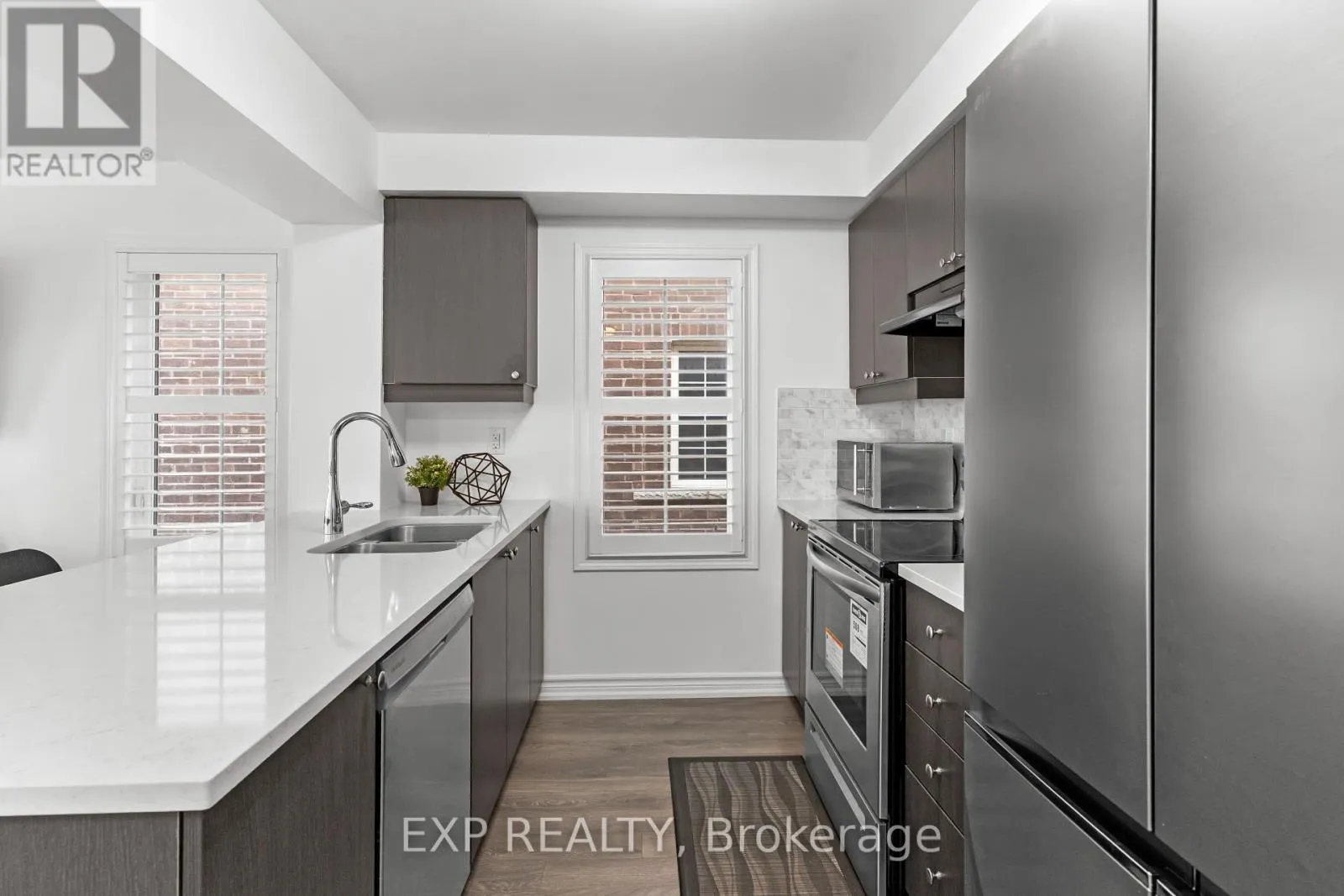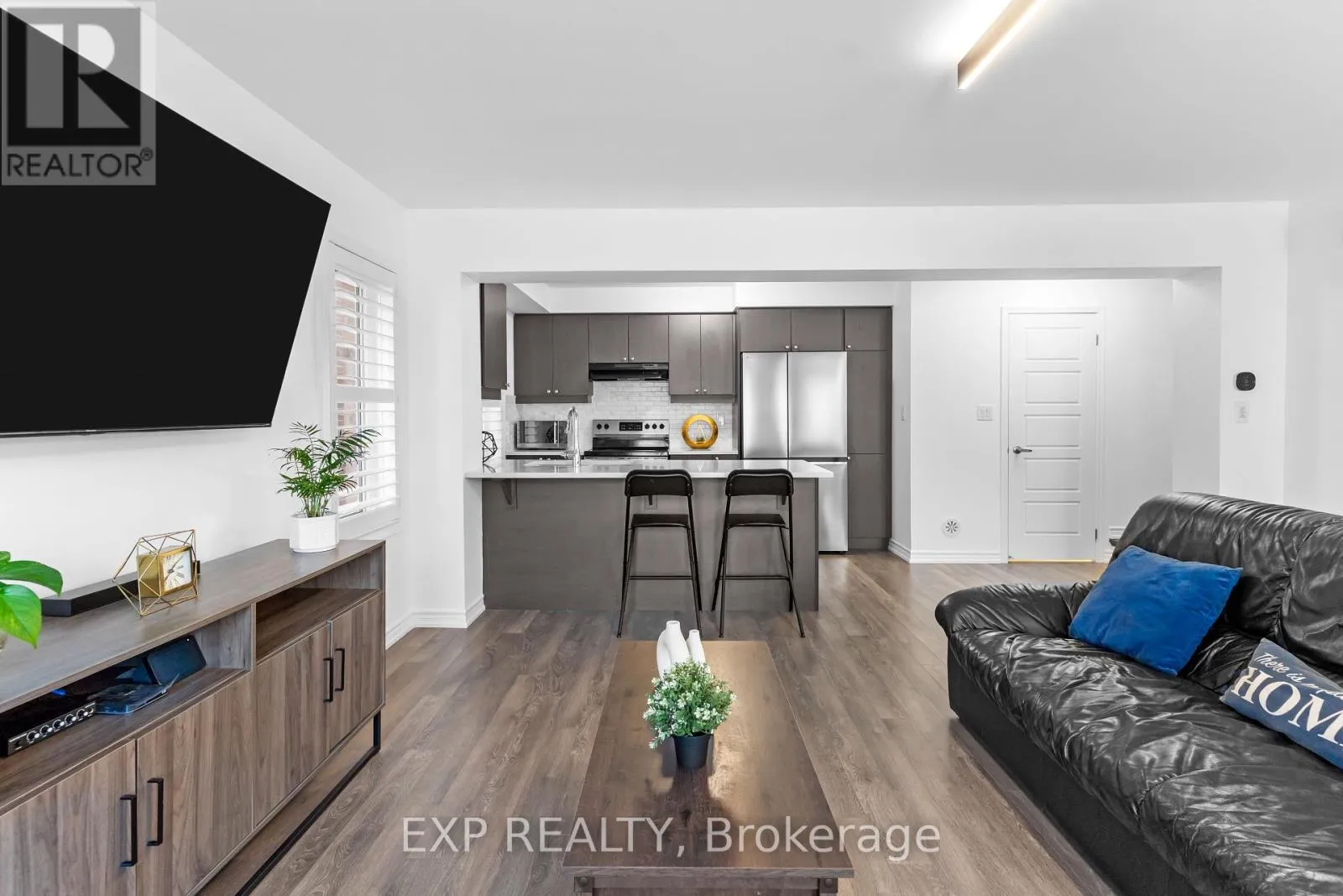 Bright Modern End Unit Townhome in WhitbyWelcome to this stylish 3 bedroom freehold end unit with no sidewalk and parking for 3. Extra windows flood the home with natural light, giving it a warm and open feel. The ground level offers a versatile office or flex space, .The living room floor features open concept living, a modern kitchen with stainless