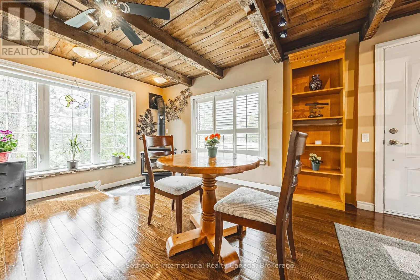 Rare opportunity in historic Vittoria! This stunning 0.99-acre treed property features a beautiful 3-bedroom character home and a new detached 2-car garage with radiant heating. Located at 1680 Old Brock St, this 1.5-story residence perfectly blends rustic charm with modern updates. The interior showcases soaring ceilings with exposed wood beams and a breathtaking central open-riser staircase leading to a charming