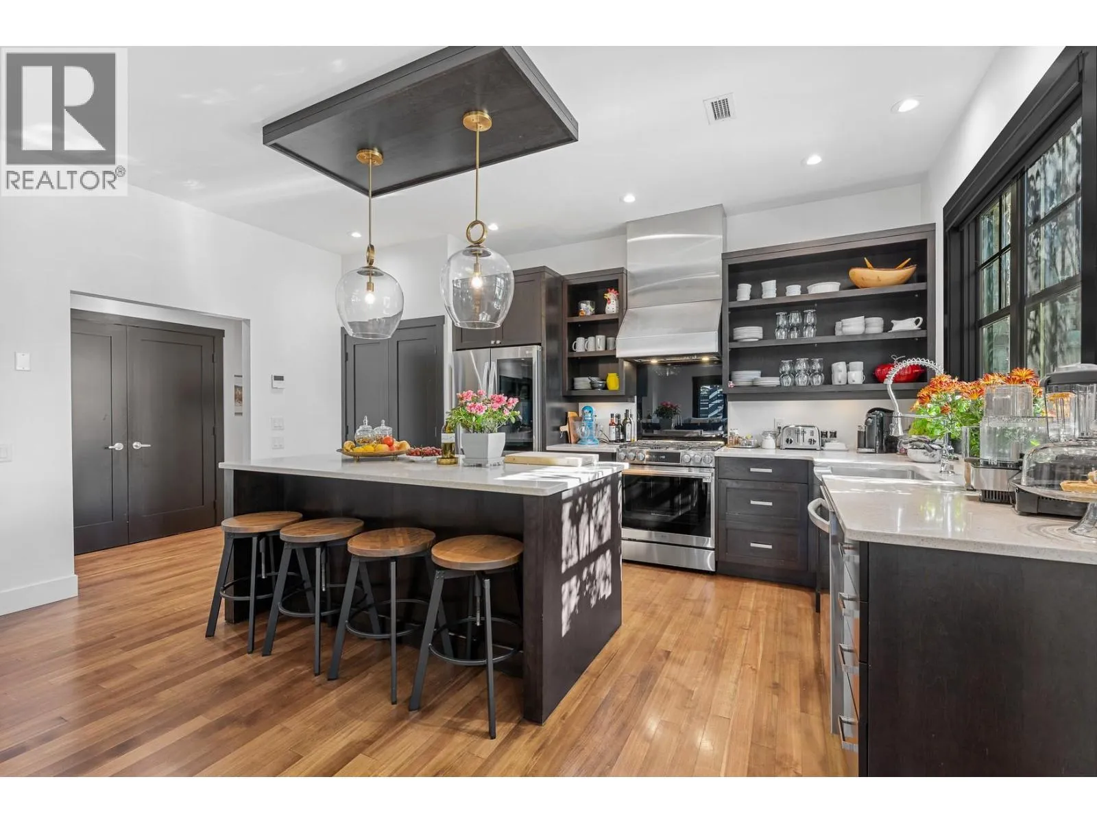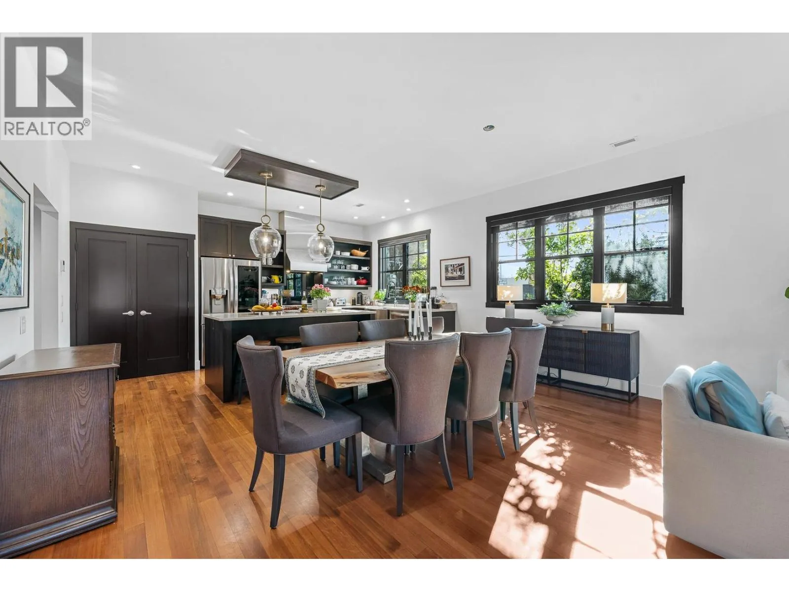 Nestled in the heart of South Pandosy, one of Kelowna’s most sought-after neighborhoods, this beautiful brownstone showcases luxury and urban sophistication. This home features main-level living with an open-concept layout, seamlessly integrating the kitchen, dining, and living areas—ideal for daily life and entertaining. The gourmet kitchen is a chef’s dream, complete with custom cabinetry, professional-grade stainless steel appliances, a spacious