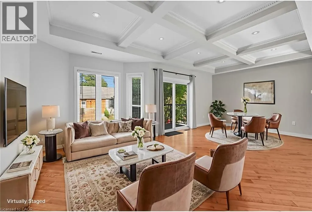 Enjoy the best of urban living in this spacious and updated home, ideally located close to Hamilton Harbour, the GO Station, and vibrant James Street North. The main floor features an expansive open-concept living and dining area with coffered ceiling, hardwood floors, recessed lighting, a front balcony, and access to the garden deck. The modern kitchen includes an island and