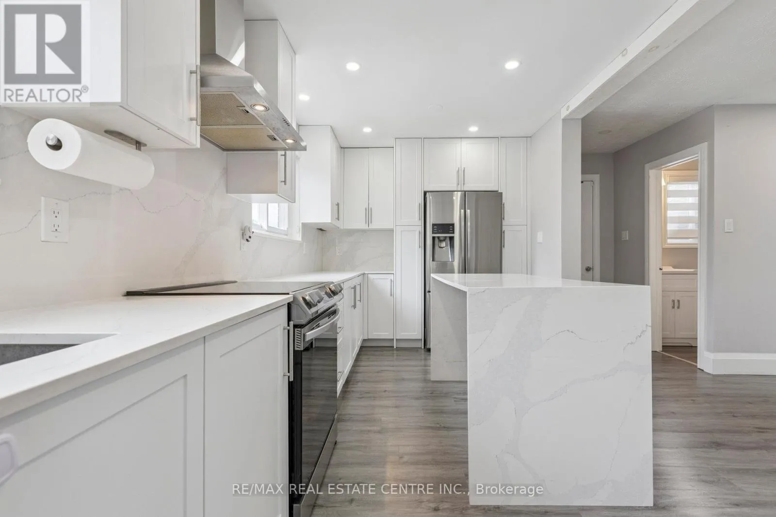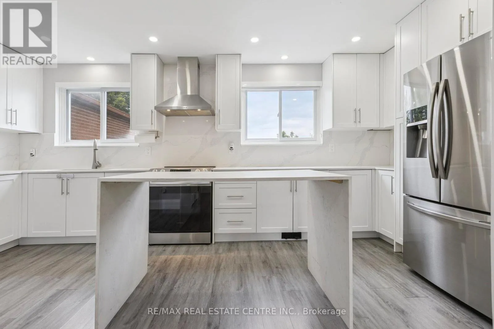 Welcome to 122 Mooregate Crescent, a fully renovated 4+1 bedroom semi-detached home with a walk-out basement.The home features a custom exposed aggregate concrete driveway with parking for 4 vehicles.Inside, you’ll find a bright, open-concept main floor with premium SPC luxury vinyl flooring, pot lights throughout, a fireplace, and zebra blinds. The modern kitchen offers sleek cabinetry, quartz countertops and backsplash,