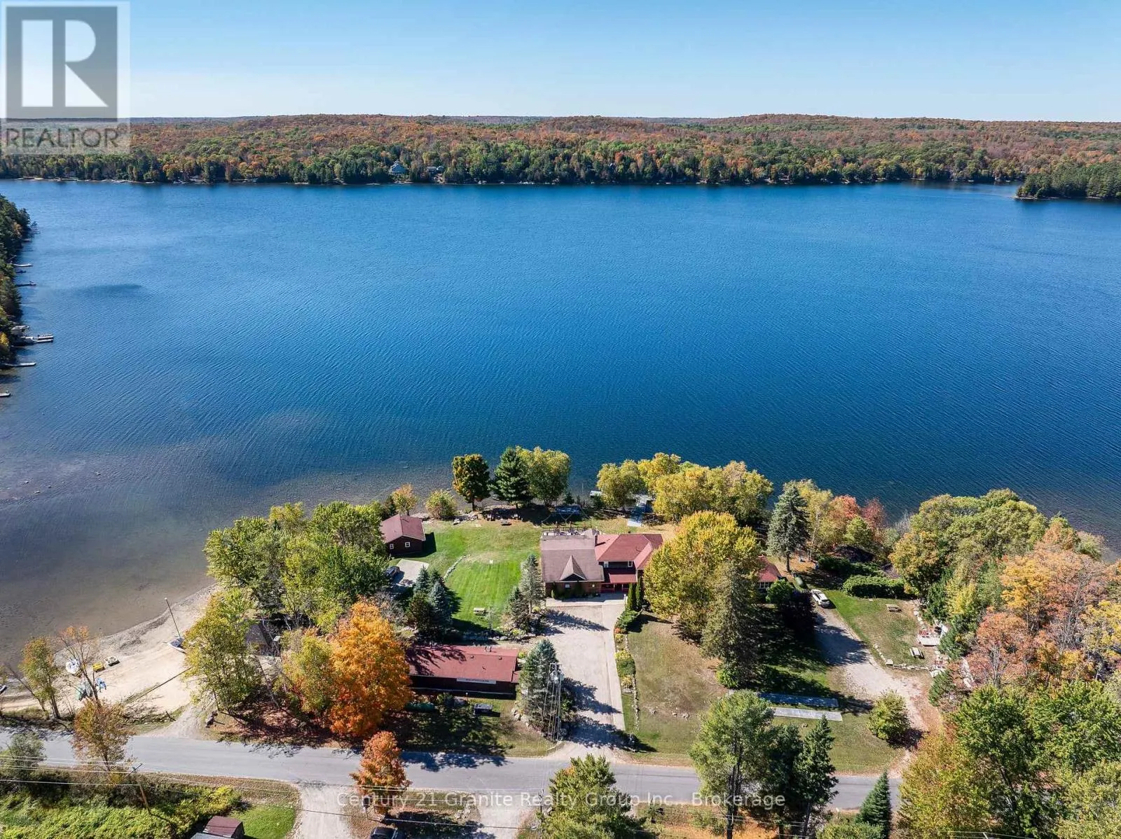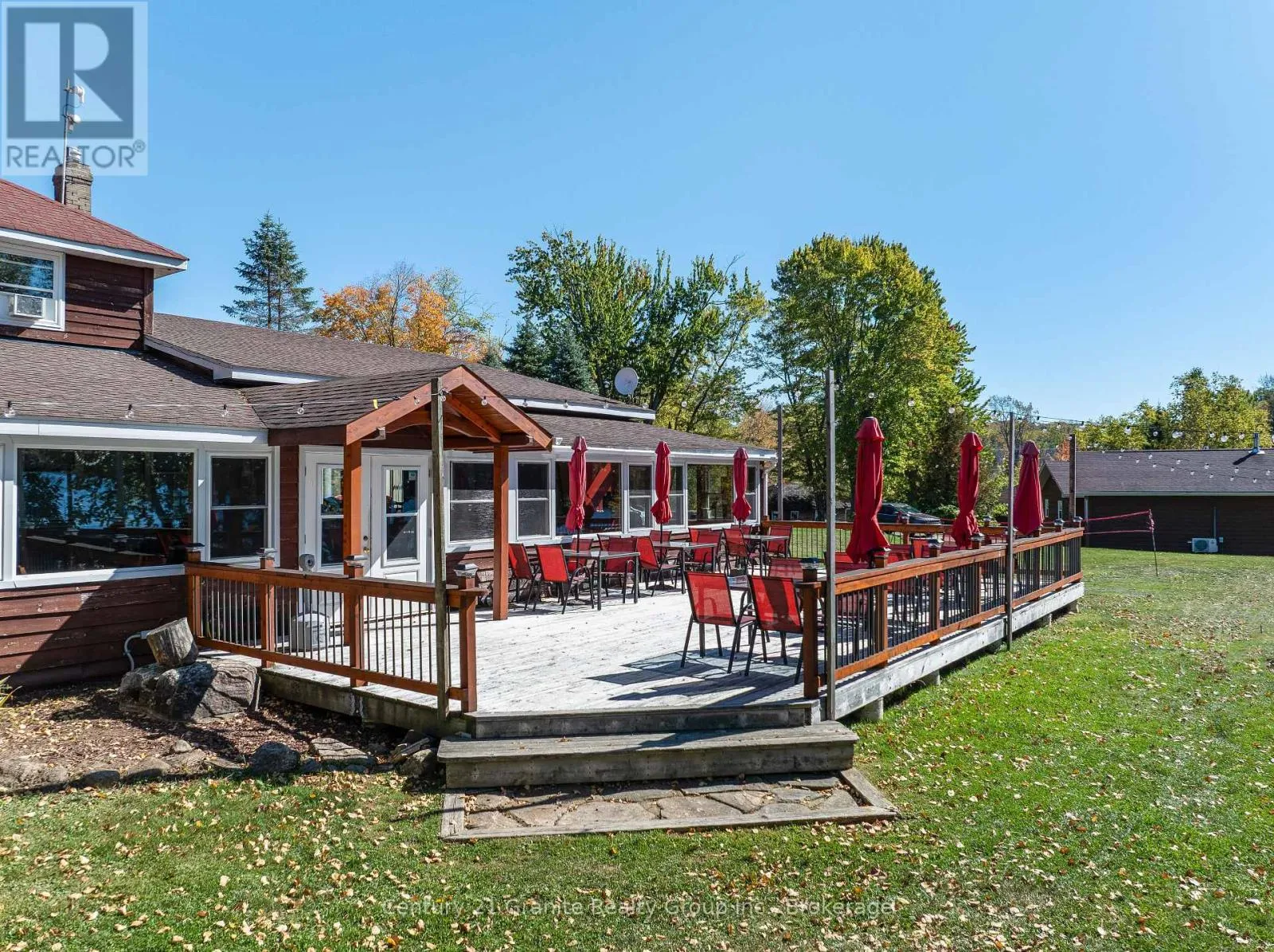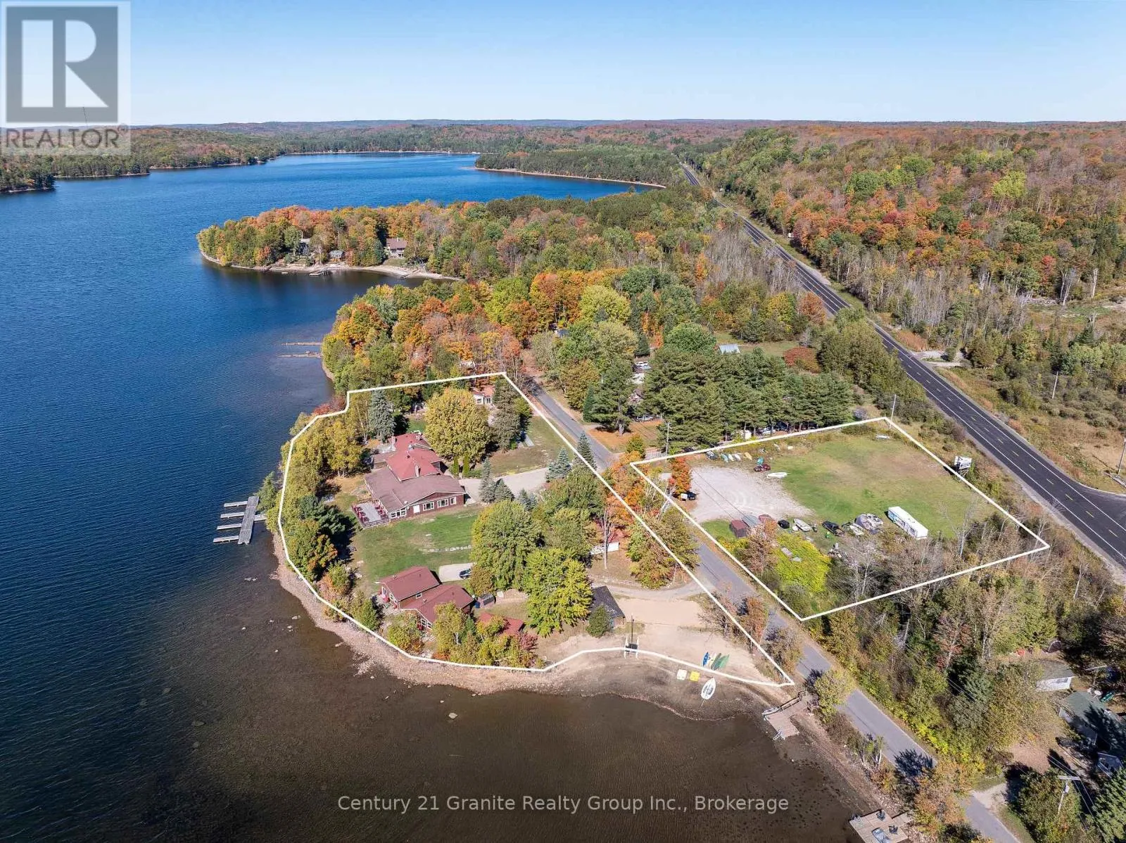 Welcome to the Red Umbrella Inn, a cherished 4-season resort on Twelve Mile Lake, part of the sought-after 3-lake chain with Little and Big Boshkung. Sitting on 3.5 acres of level, pie-shaped land with stunning southern and western exposures, this property showcases unforgettable sunsets and a private sand beach tucked into a sheltered bay. A large multi-slip dock at the