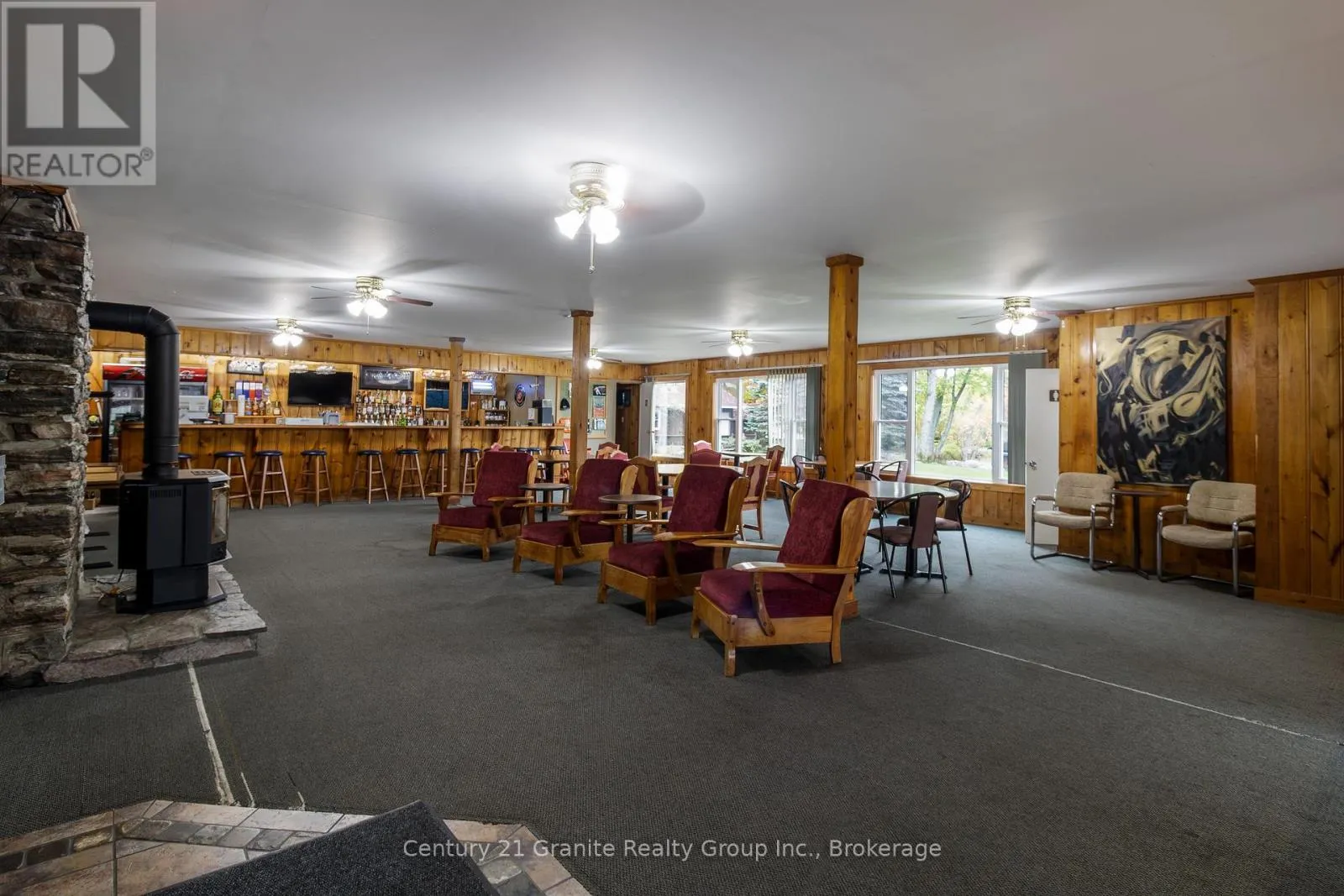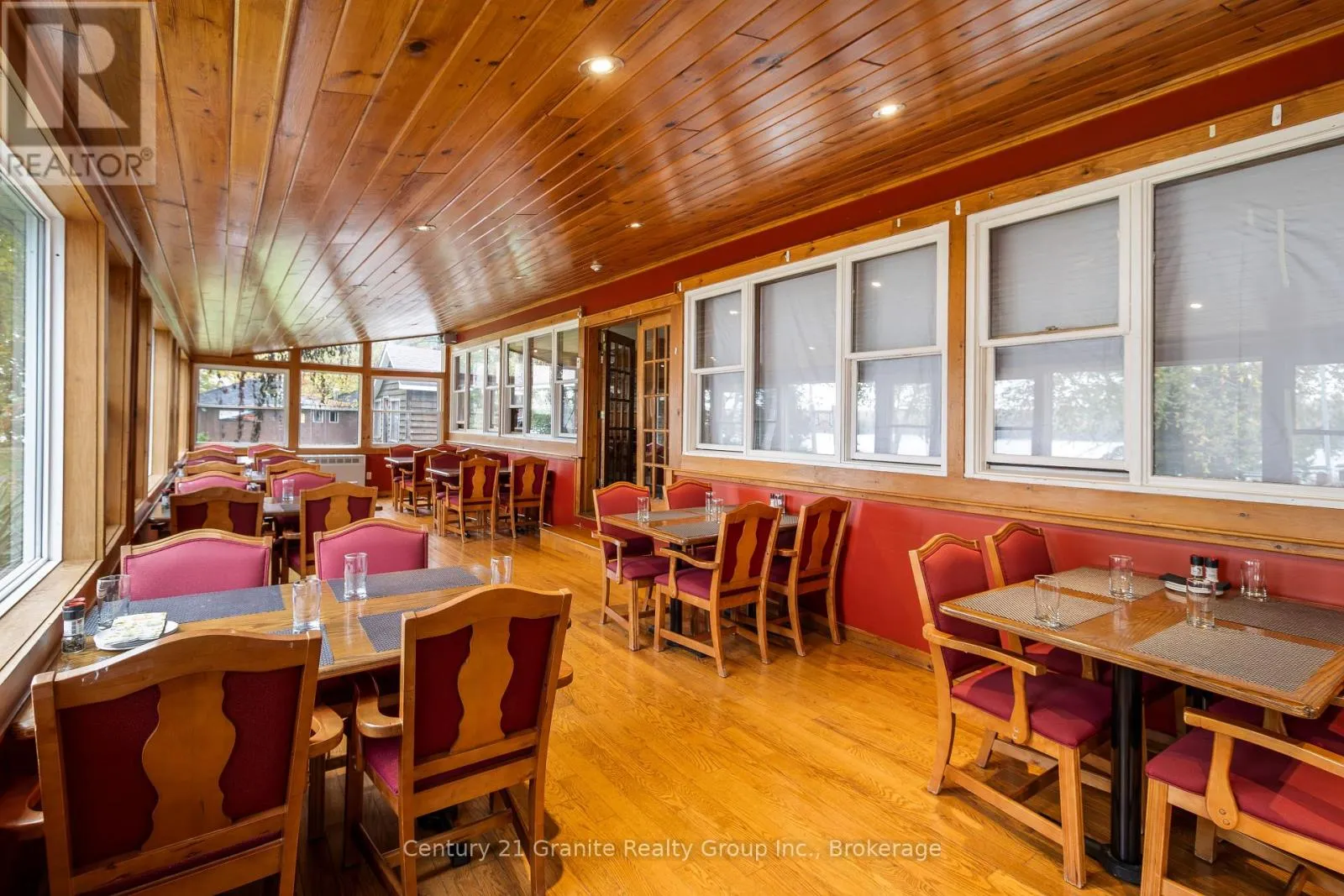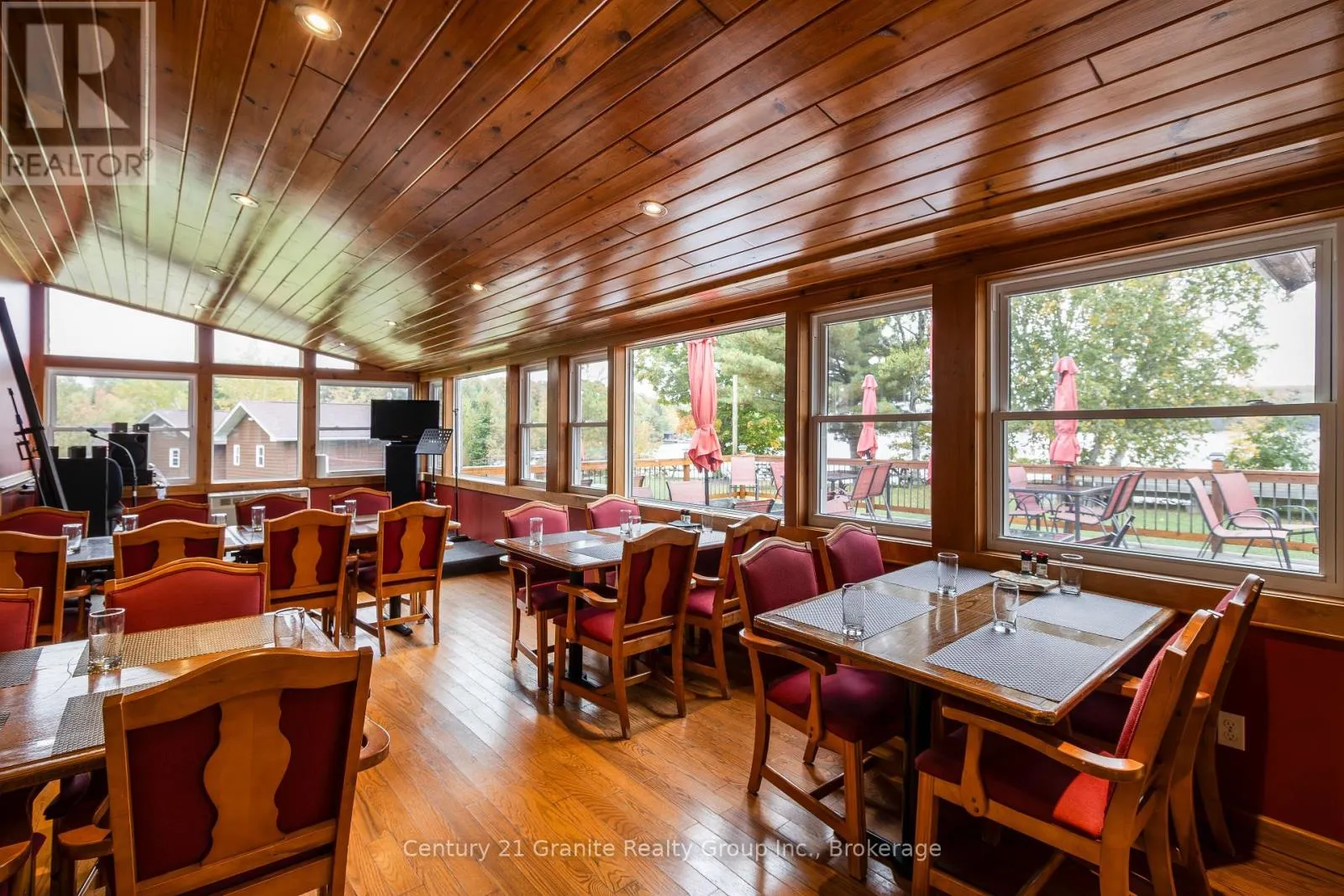Welcome to the Red Umbrella Inn, a cherished 4-season resort on Twelve Mile Lake, part of the sought-after 3-lake chain with Little and Big Boshkung. Sitting on 3.5 acres of level, pie-shaped land with stunning southern and western exposures, this property showcases unforgettable sunsets and a private sand beach tucked into a sheltered bay. A large multi-slip dock at the