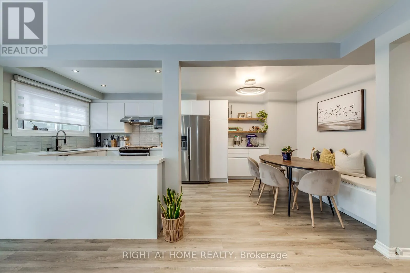 Welcome to 132 Ashton Crescent! This stunningly renovated 3-bedroom, 3-washroom condominium townhouse is a true showpiece in Brampton’s sought-after Central Park community. Immaculate, move-in ready, and carpet-free throughout, the home features premium wide-plank hardwood floors, smooth ceilings, and energy-efficient LED pot lights. The bright, open-concept main floor is anchored by a chefs kitchen with quartz counters, subway tile backsplash, stainless