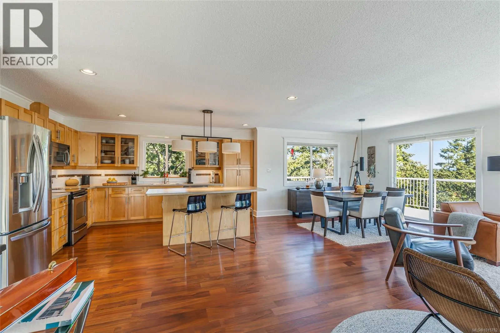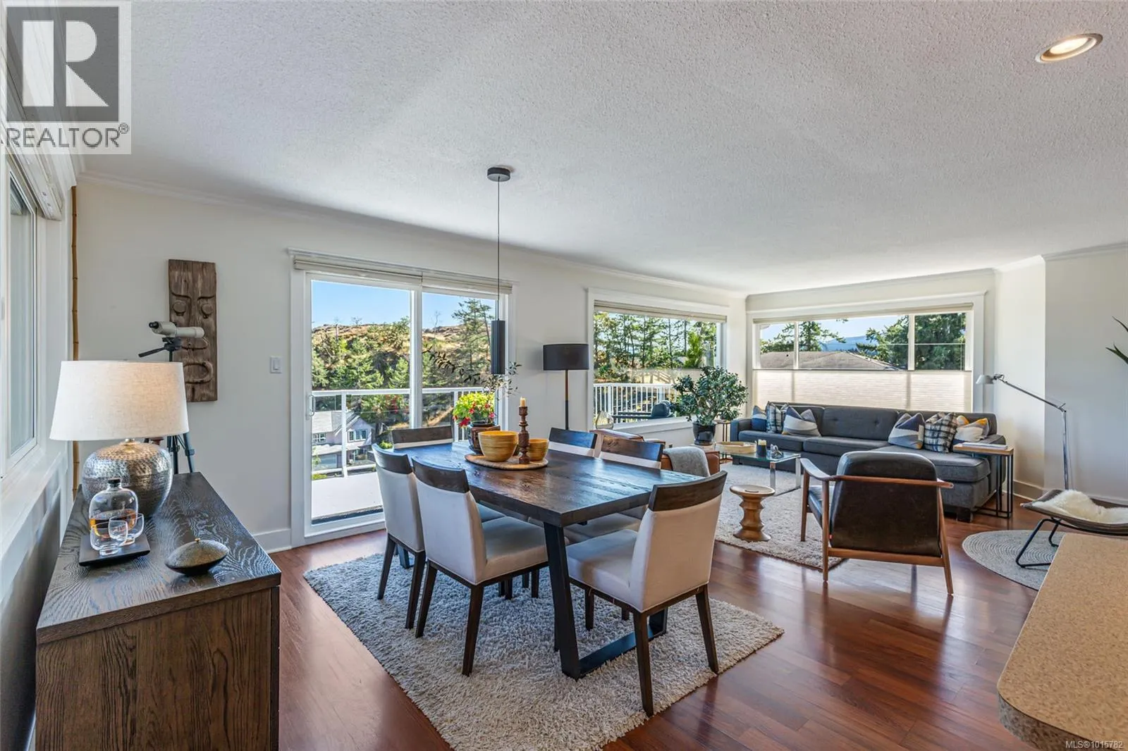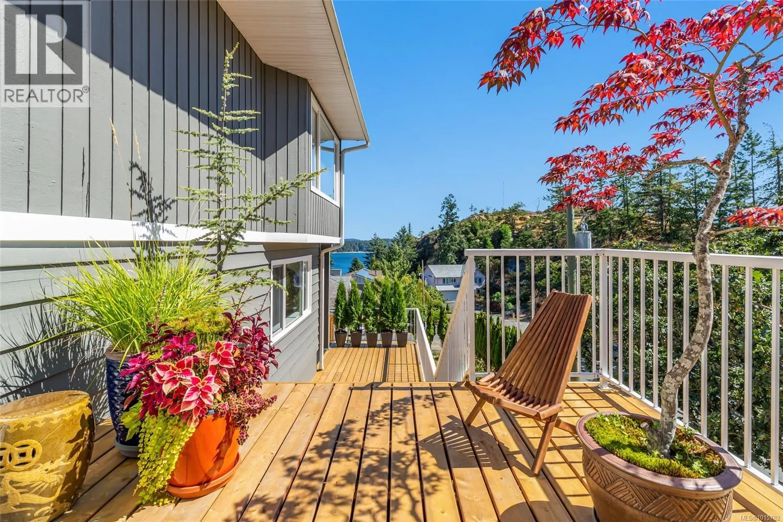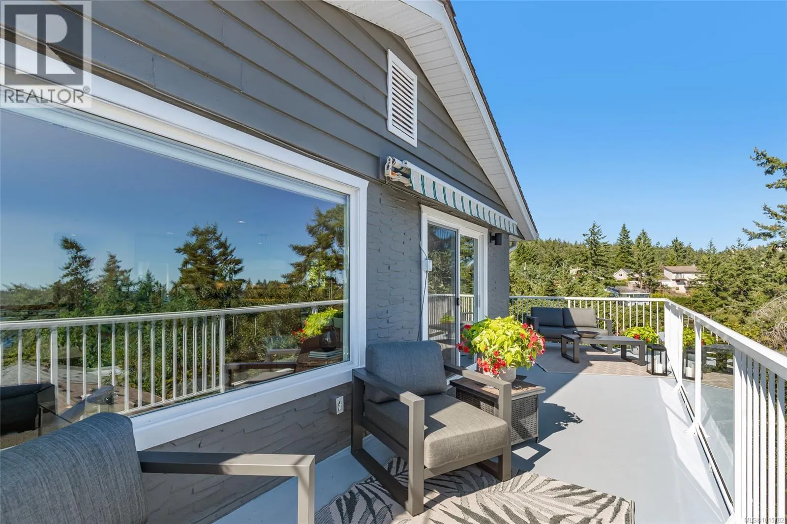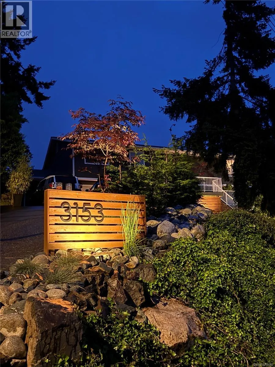 Desirable Departure Bay! Beautiful ocean and mountain views with privacy amongst the treetops! Hard to find Southwest sun exposure makes for efficient heating along with a bright open-concept home showcasing expansive views through large windows that flood the interior with natural light. The main floor has a large kitchen, dining, and living area with direct access to generous wrap around