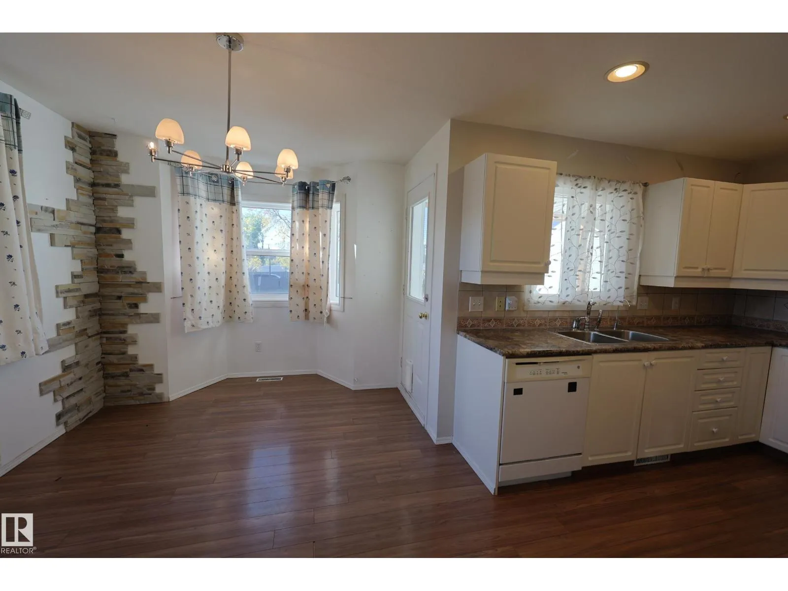 TOWN HOME CONDO Located in the right between Downtown Edmonton and West Edmonton Mall just MINUTES FROM THE RIVER VALLEY and tails, 2 min walk to the NEW LRT STATION that is currently under construction. END UNIT is this small condo project with extra side yard space. STONE DETAILS AND LAMINATE FLOORING throughout the main level with a
