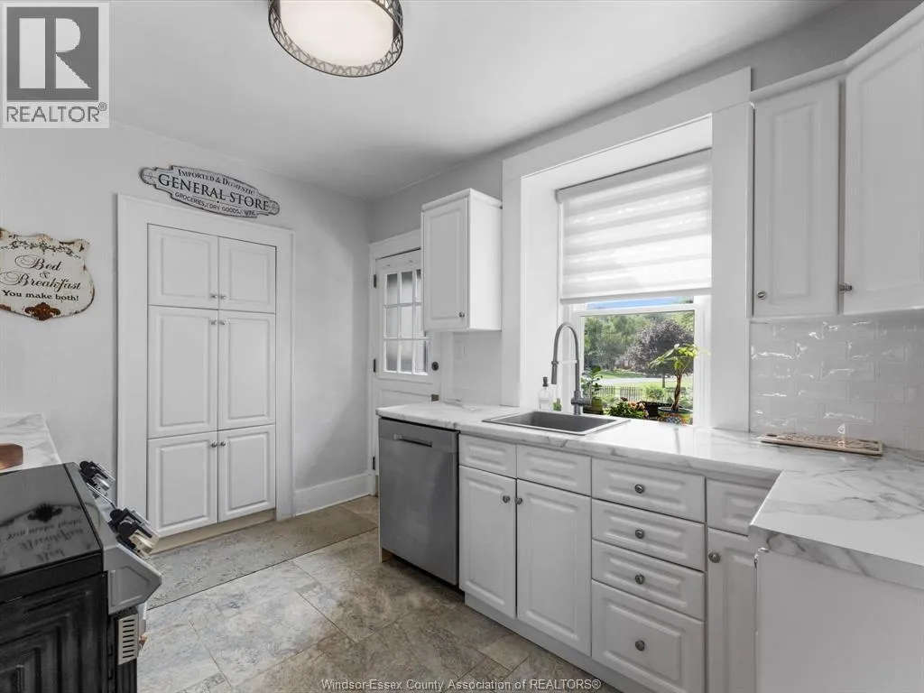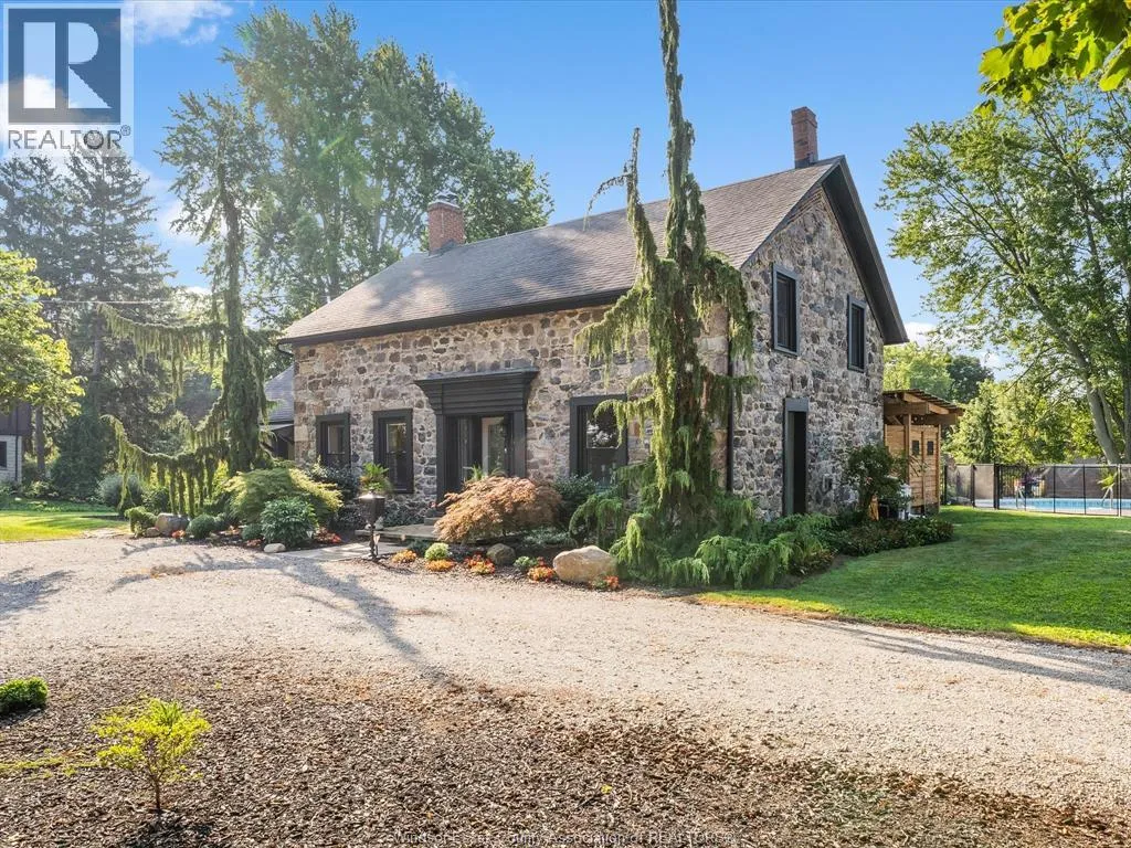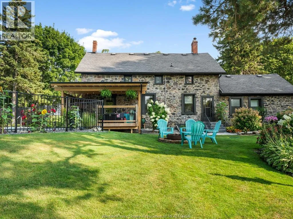 Step into history with this beautifully reimagined 1800s fieldstone home, set on a full acre of treed land in one of Kingsville’s most sought after neighbourhoods. Featuring 5 bedrooms and 2 bathrooms, this property blends timeless character with modern updates. The main floor offers a spacious primary suite, a large dining room, and a bright living room with a gas