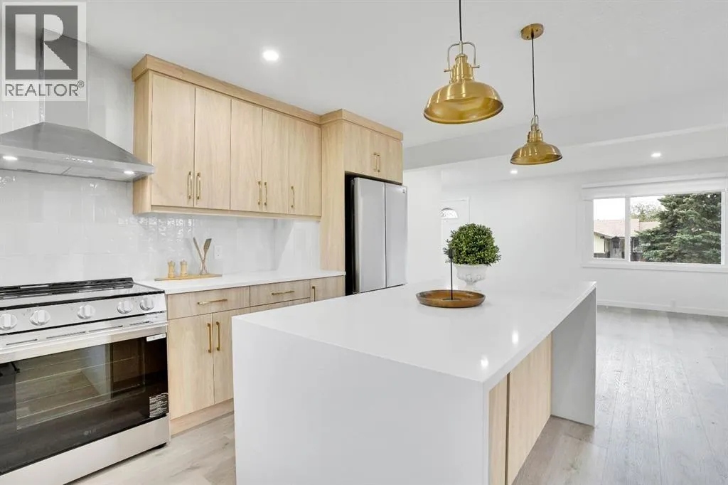 Welcome to this beautifully renovated bungalow situated on a large, private corner lot in a sought-after neighborhood! This home features a double detached garage with additional parking for two vehicles or your RV. The main floor showcases a modern open-concept design with three spacious bedrooms and two full bathrooms, including a stunning primary ensuite. The brand new kitchen offers premium