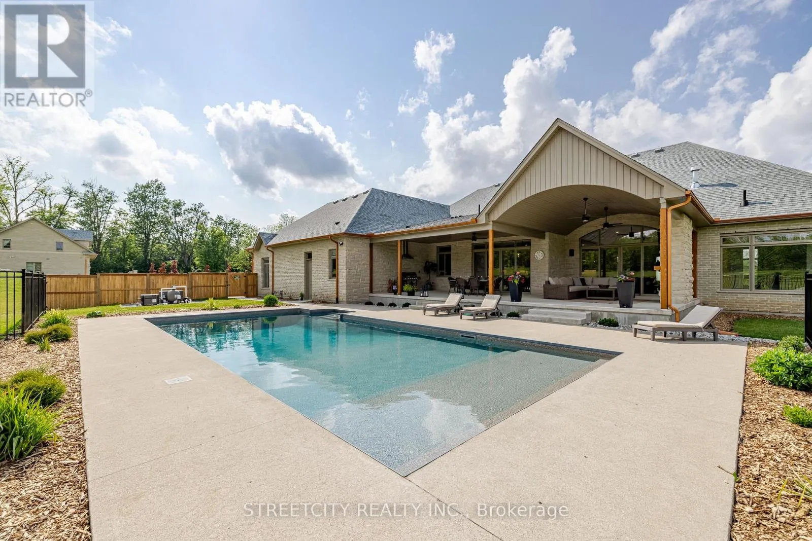 +"PublicRemarks": "Endless possibilities await in this unique Custom Built Estate. Countryside Living on 6.9 acres while being in the City, minutes from Hyde Park Shopping Centre and Western University. This Architectural masterpiece blends Old-World charm with modern amenities and includes a private guest house- perfect for visiting family and friends or rental. The main residence offers excellent potential for multi-generational living, featuring a recreation room, bar/kitchen, two additional bedrooms, a full bath, and laundry facilities. The inviting entrance leads to an open-concept layout, featuring 10-foot ceilings and combined with in-floor heating on both levels, enhances unparalleled luxury. The elongated dining room is perfect for gatherings, and a cozy gas firplace with a stone mantle adds warmth throughout. A barrel ceiling extends from the great room to the covered rear porch, blending indoor and outdoor living. The chef inspired kitchen is anchored by a custom stone-cast range hood and 48-inch professional gas stove offering 8 burners and 2 ovens. Patio doors from the dinette and a pass through window from the pantry, complete with full refrigerator and sink, leads to the back porch dining area. Secondary bedrooms feature custom closets and private ensuites for comfort and privacy. This home offers over 6573 sq ft of finished living space. The outdoor space is ideal for entertaining with stone gas fireplace and covered porch overlooking the 18x40 in ground pool with sun ledge. This home offers luxury, comfort and endless possibilities for family living. (id:62650)"