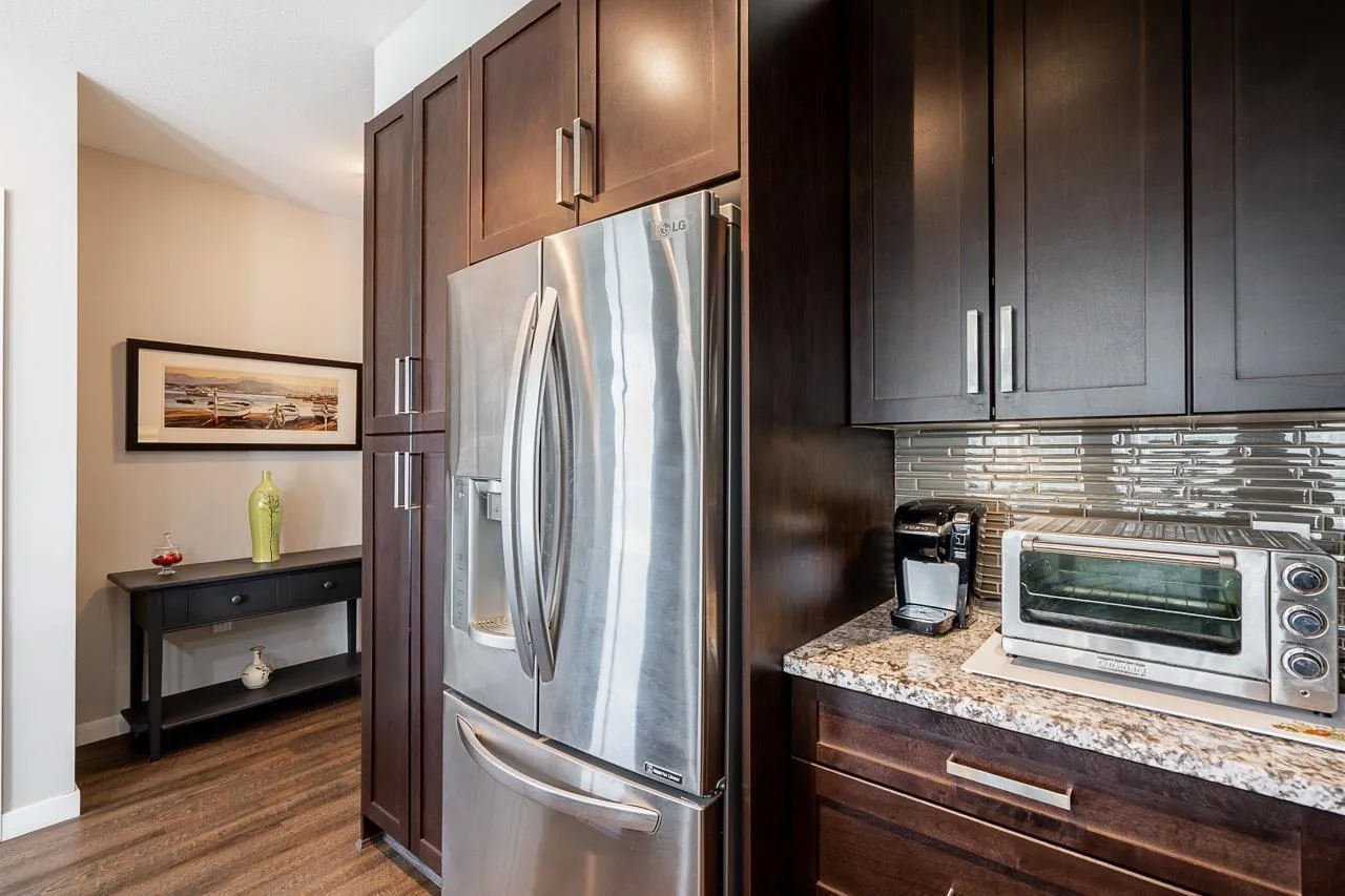 Award winning ‘WATERSTONE’ with deluxe facilities including pool & full gym! CORNER UNIT, 2 bedrooms + den, 2 bathrooms with wrap around deck facing greenspace! Oversized windows, high end kitchen featuring granite counters, S/S appliances and kitchen island with eating bar. Primary bedroom w/huge walk-in closet, 2nd ‘corner’ bedroom w/windows on 2 walls, huge wrap around deck, 2 underground secured