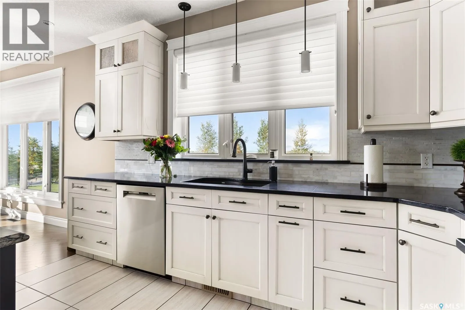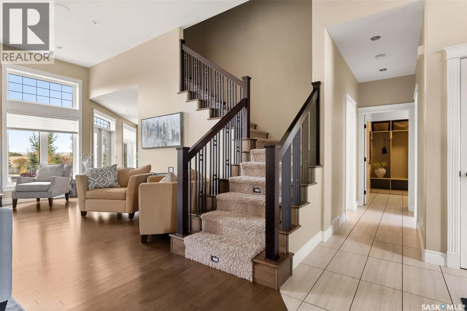 Stunning executive acreage just minutes north of Carlyle in the RM of Moose Mountain. This beautifully treed and private property features a 3,255 sq. ft. custom-built home with a fully finished basement and heated triple car garage. The main floor offers an open-concept design with a spacious living room showcasing floor-to-ceiling windows and a stone natural gas fireplace. The kitchen