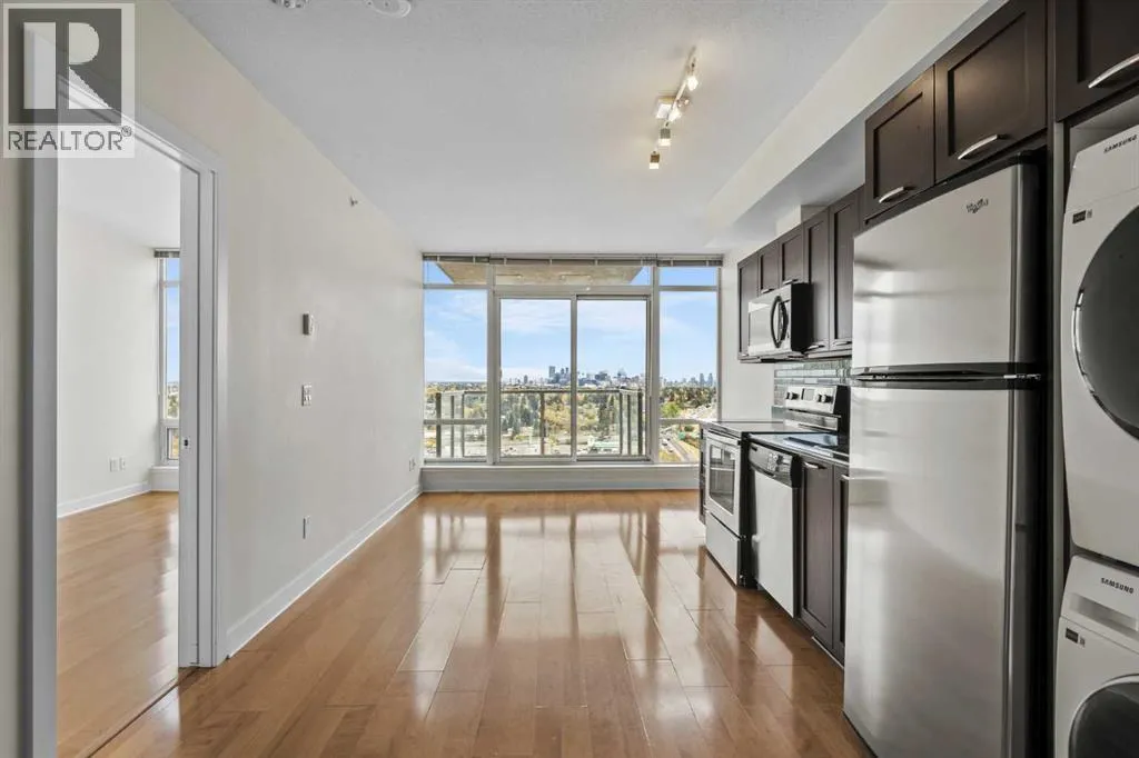 Welcome to University City, where contemporary sophistication meets effortless urban living. This exceptional east-facing residence captures sweeping panoramic views of downtown Calgary through its impressive floor-to-ceiling windows, creating a bright and inspiring space bathed in natural light. Thoughtfully designed, the open-concept layout showcases a modern eat-in kitchen adorned with granite countertops, stainless steel appliances—including a newly replaced microwave hood fan—and