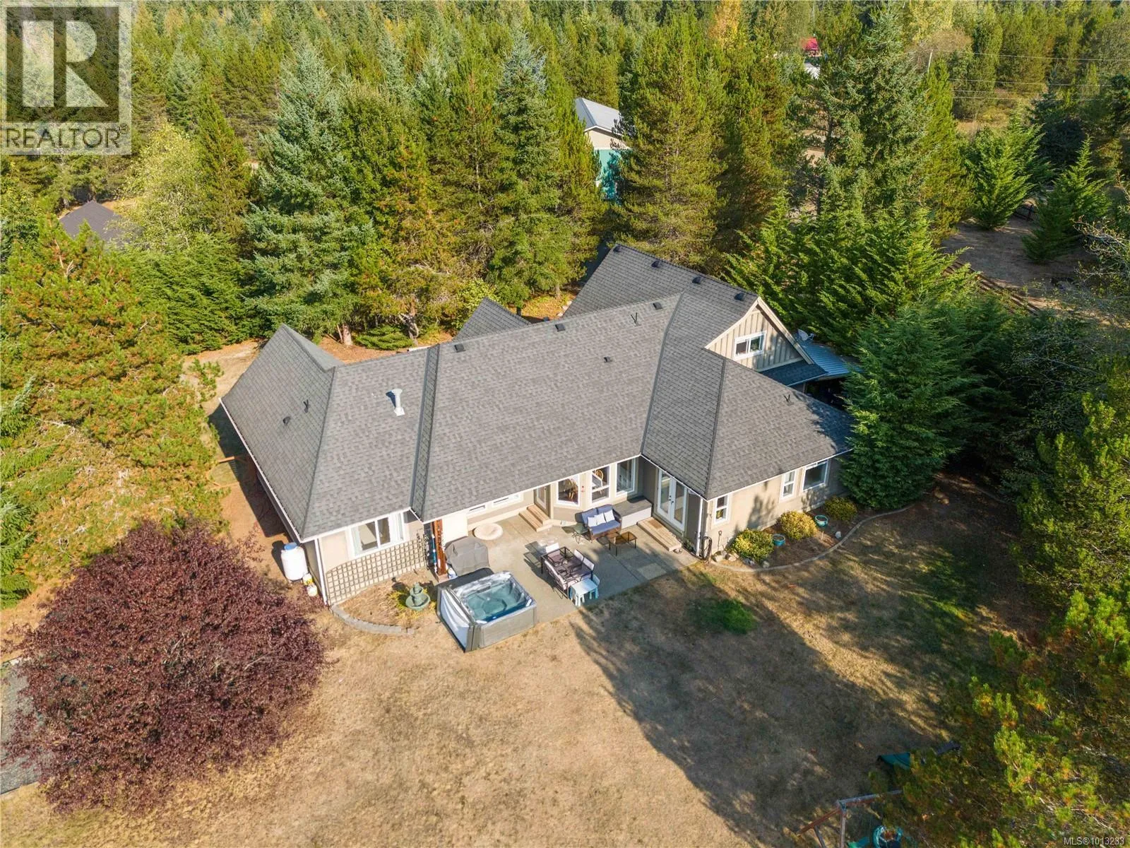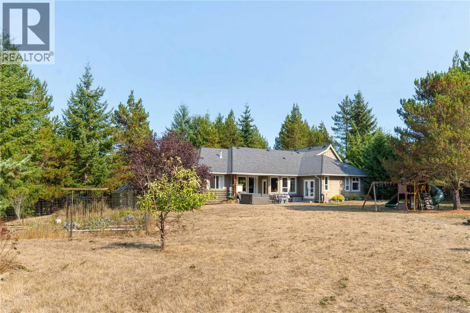 +"PublicRemarks": "Tranquil Executive Acreage in Coombs! The perfect blend of country serenity and urban convenience! Be sure to view this spacious and bright 3 Bed/4 Bath semi-custom Executive Home on a 2.82-acre park-like parcel of land. Just three years young, the home boasts contemporary fixtures and finishes, three levels of living space, a generous use of glass for a bright ambiance, and a private resort-style yard with a swim spa, firepit, and a fenced garden area. There’s also a large Double Garage/Workshop, lots of parking, and an RV spot with a sani dump and included travel trailer. Tucked away in a peaceful rural setting just mins from Parksville and Qualicum Beach. An entry drive leads to a massive parking area. Step into a wide foyer with a vaulted ceiling and eng hardwood flooring that flows into the expansive Great Room. The Living Room boasts a two-storey ceiling, a heat pump, and a nat gas fireplace flanked by built-in cabinetry. The Dining Room is brightened by dual picture windows with views of the landscaped yard. The Gourmet Island Kitchen features granite CTs and quality stainless appls incl a 6-burner gas stove and ‘Samsung Family Hub’ fridge. The WI pantry has easy access to the Garage for grocery unloading. From the Living Room, folding glass doors open to a stunning 912 sqft patio with timber accents, partly covered for all-season enjoyment. The spacious Primary Suite has patio access, a trayed ceiling, WI closet, and a luxurious 5-piece ensuite with heated floors, a freestanding tub, gas fireplace, and a glass shower. Also on the main level: a Powder Room, Office/Den, Laundry/Mudroom, and access to a Garage/Workshop with EV charger. Upstairs you'll find a Family Room, Bedroom, and 4-pc Bath, while the lower level hosts a Rec Room, Media Room, Bedroom, Office, Bath, and Utility Room. Infrastructure is already in place for a future Carriage Home, and there’s even potential to qualify for tax-friendly farm status. Great extras, visit our website for more. (id:62650)"