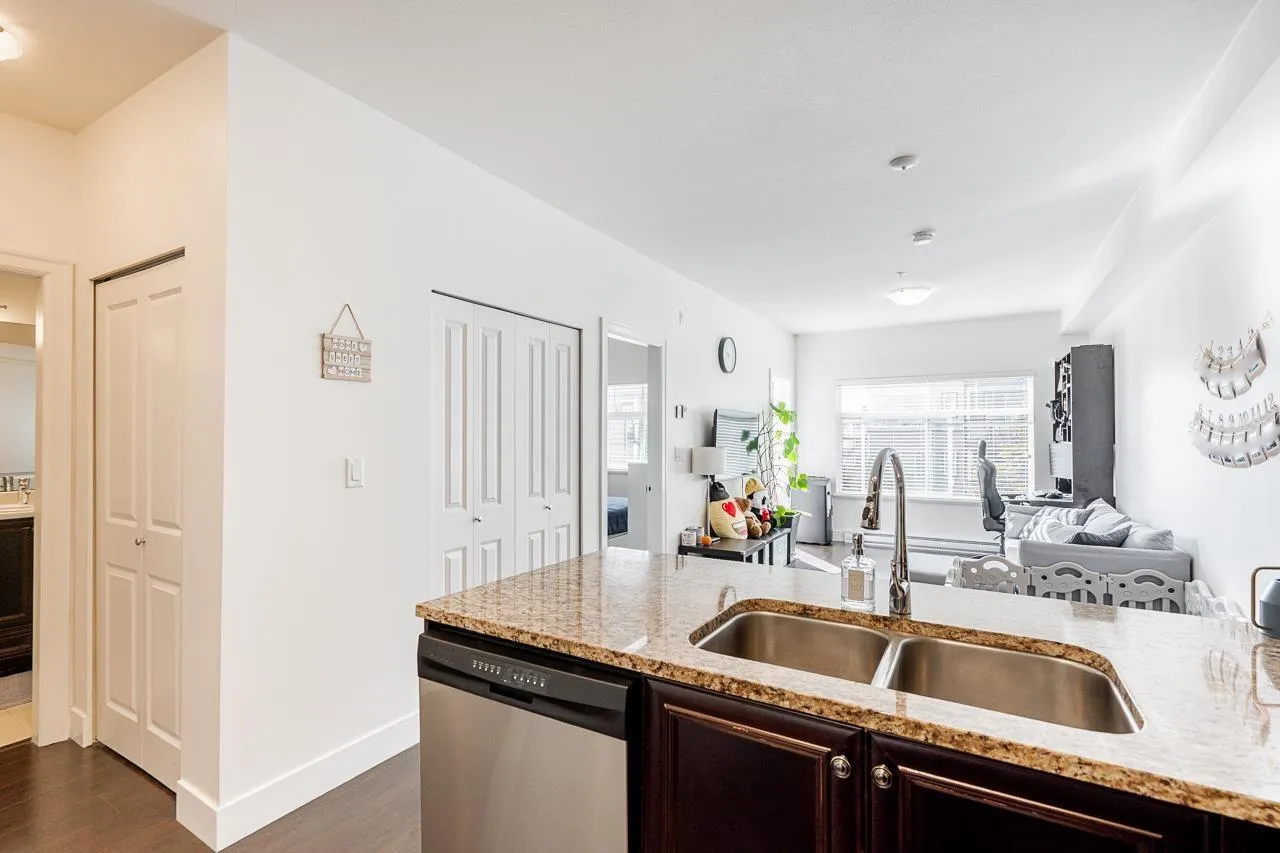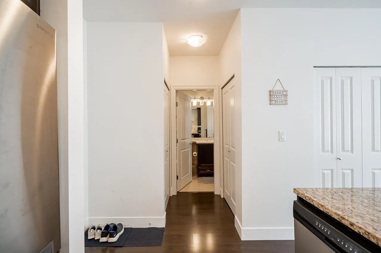 Welcome to Salix in Clayton Heights! Bright south-facing 1-bedroom, 590+ sq.ft. unit with a lovely view. Includes 2 parking stalls and a huge 4’x8′ garage-style storage locker. Features stainless steel appliances, stone countertops, soft-closing cabinets with underlighting, large pantry, and wide plank laminate flooring. Enjoy 9-ft ceilings, an open layout, full-size washer/dryer, and a spacious covered patio. Big living room