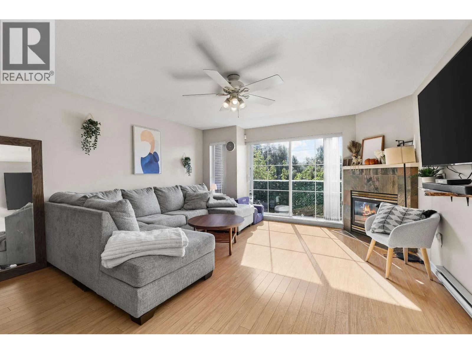 This 2 bed + flex, 2.5 bath townhome offers over 1,300 sq.ft. of functional living with a private patio ideal for entertaining or relaxing. The main floor features open living and dining areas with a gas fireplace and direct patio access. Upstairs includes a spacious primary bedroom with ensuite, a second bedroom, and laundry. The flex room on the main