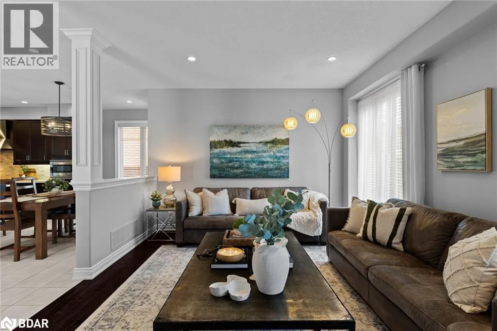 Quick & flexible closing available – move in before winter! Welcome to 120 Jewel House Lane, nestled in one of Barries most sought-after neighbourhoods. This distinguished residence showcases a stately exterior complemented by meticulously maintained landscaping. Step inside to an impressive, light-filled foyer where soaring ceilings and expansive sight-lines immediately reveal the homes generous scale and timeless sophistication. At the