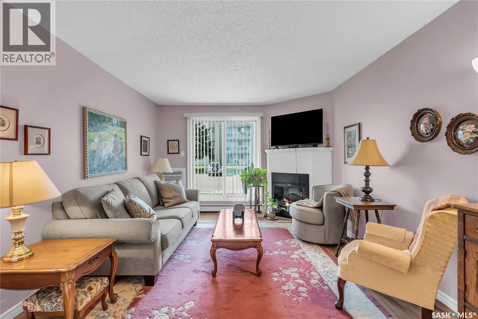 Beautifully maintained 2 bedroom corner unit located in a quiet complex. This bright and inviting condo features upgraded flooring and is conveniently located on the main floor. The functional layout offers two generously sized bedrooms and a full bathroom. There is a cozy living room with electric fireplace and the parking stall is right outside the door. Centrally located and