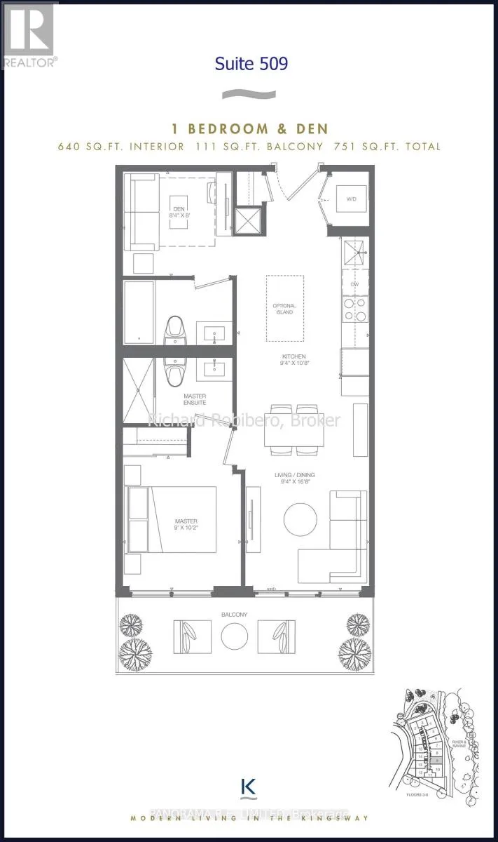 Fabulous 1-Bedroom plus Den, 2-Bathroom Rental with extra-large balcony at the High in Demand and exclusive Kingsway By The River! One of the best layouts and floorplan locations. This unit features 9-Ft smooth ceilings, and High Quality Laminate Floors. The modern and open Kitchen features Quartz Countertops, Stainless Steel Appliances, and Centre Island. The Primary Bedroom has a large closet