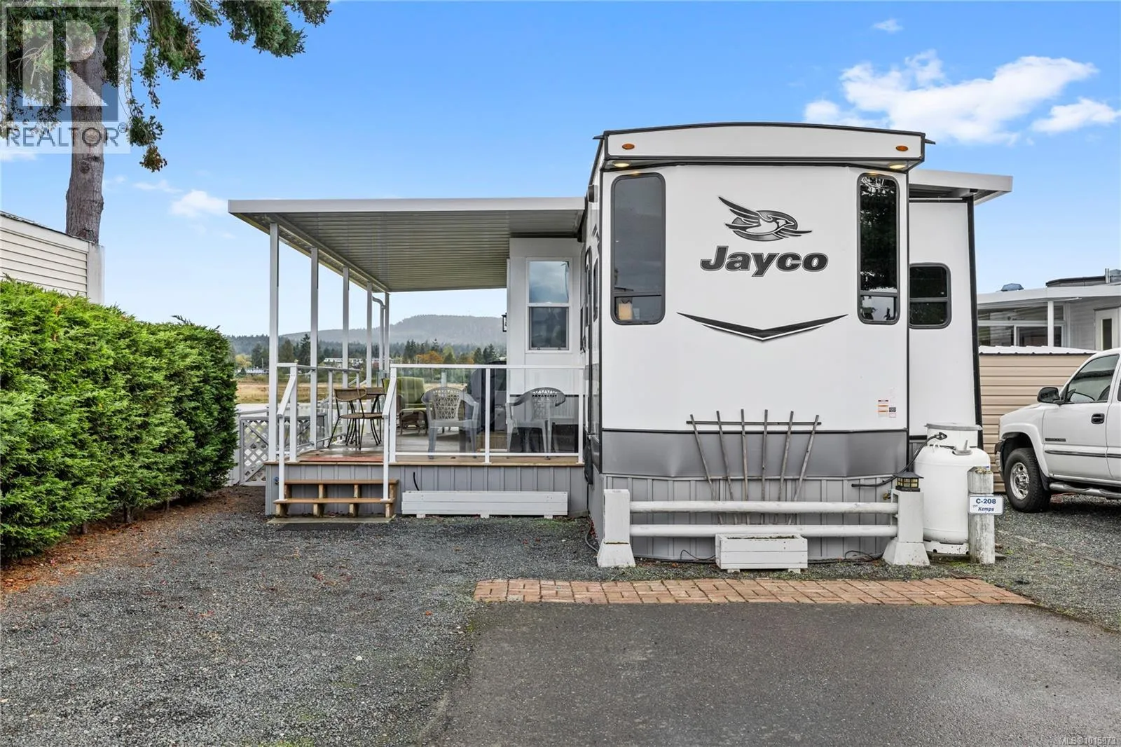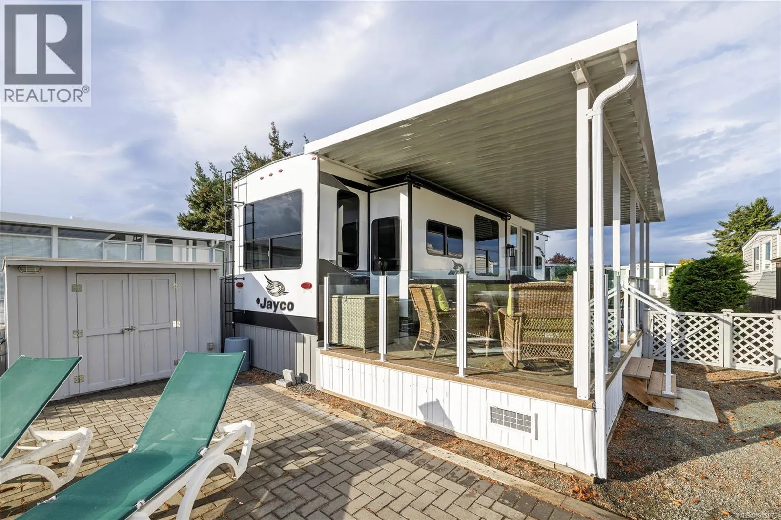 Welcome to Surfside RV Resort — a truly unique, gated oceanfront retreat in the charming seaside town of Parksville on Vancouver Island. This exceptional vacation property features a beautifully appointed 1-bedroom, 1-bath fixed trailer built in 2023, fully furnished and thoughtfully equipped with all the modern comforts you need. A large covered patio with glass railings, complete the picture. This