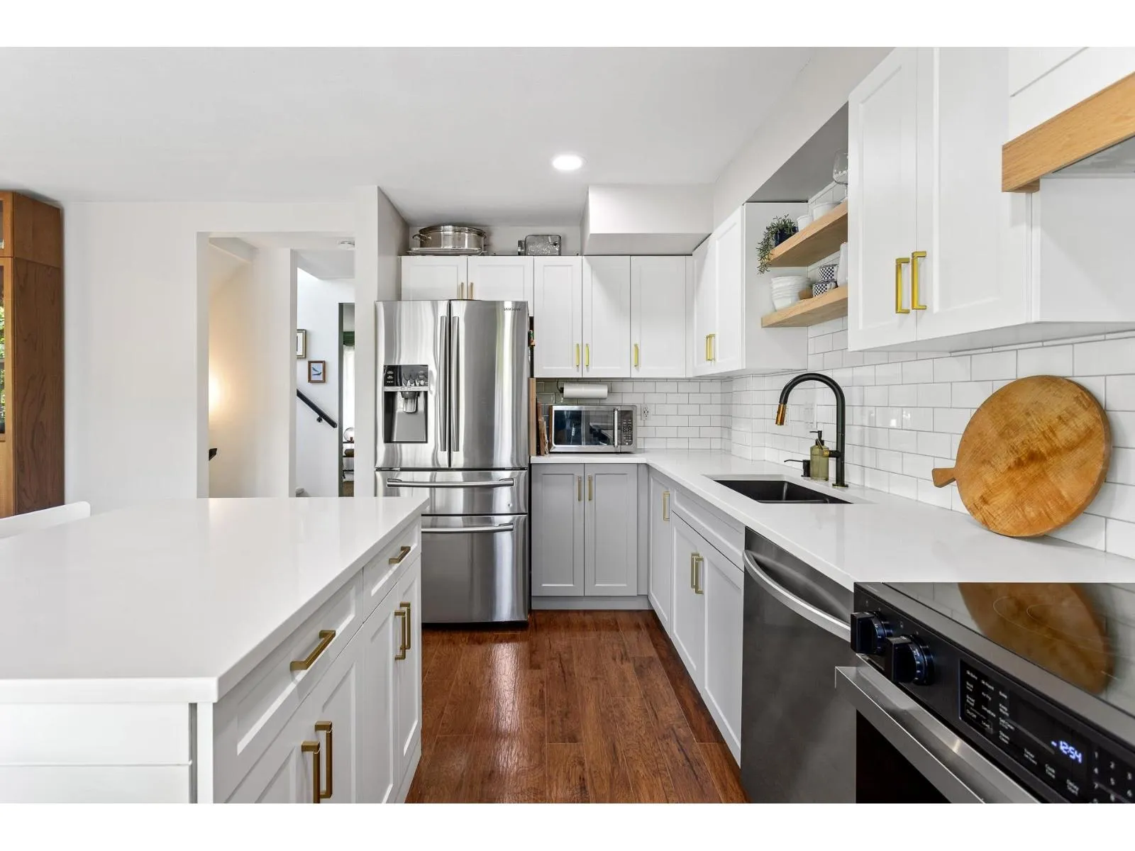 One of the largest end units, ideally positioned in the most sought-after location which borders greenbelt and park. Enjoy west facing yard & balconies. Thoughtfully updated over the last 6 years. Impressive bright kitchen has a generous eating area and direct access to a balcony with a view. The primary bdrm is a true retreat, complete with French doors opening