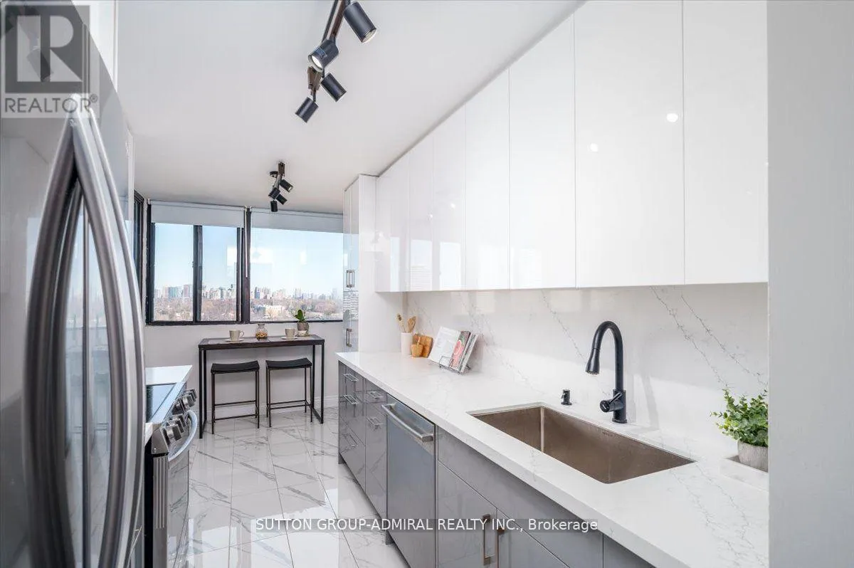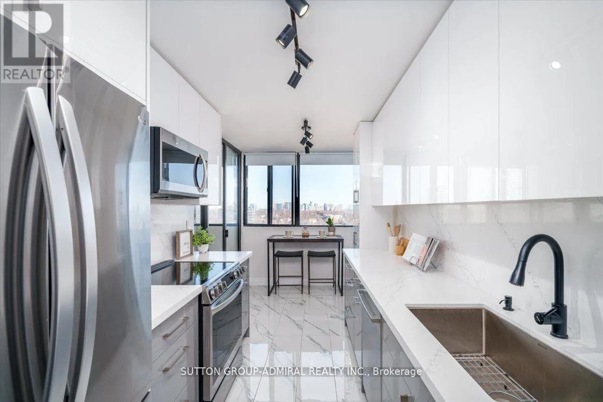 Step into elegance with this exquisite, fully renovated 2-bedroom + den, 2-bathroom condo in the prestigious North York community. Nestled amidst the lush, serene landscapes of G. Ross Lord Park, this meticulously upgraded 1,060 sq. ft. residence offers an unparalleled blend of sophistication and modern comfort. Designed with a seamless open-concept layout, the space is bathed in natural light, accentuating